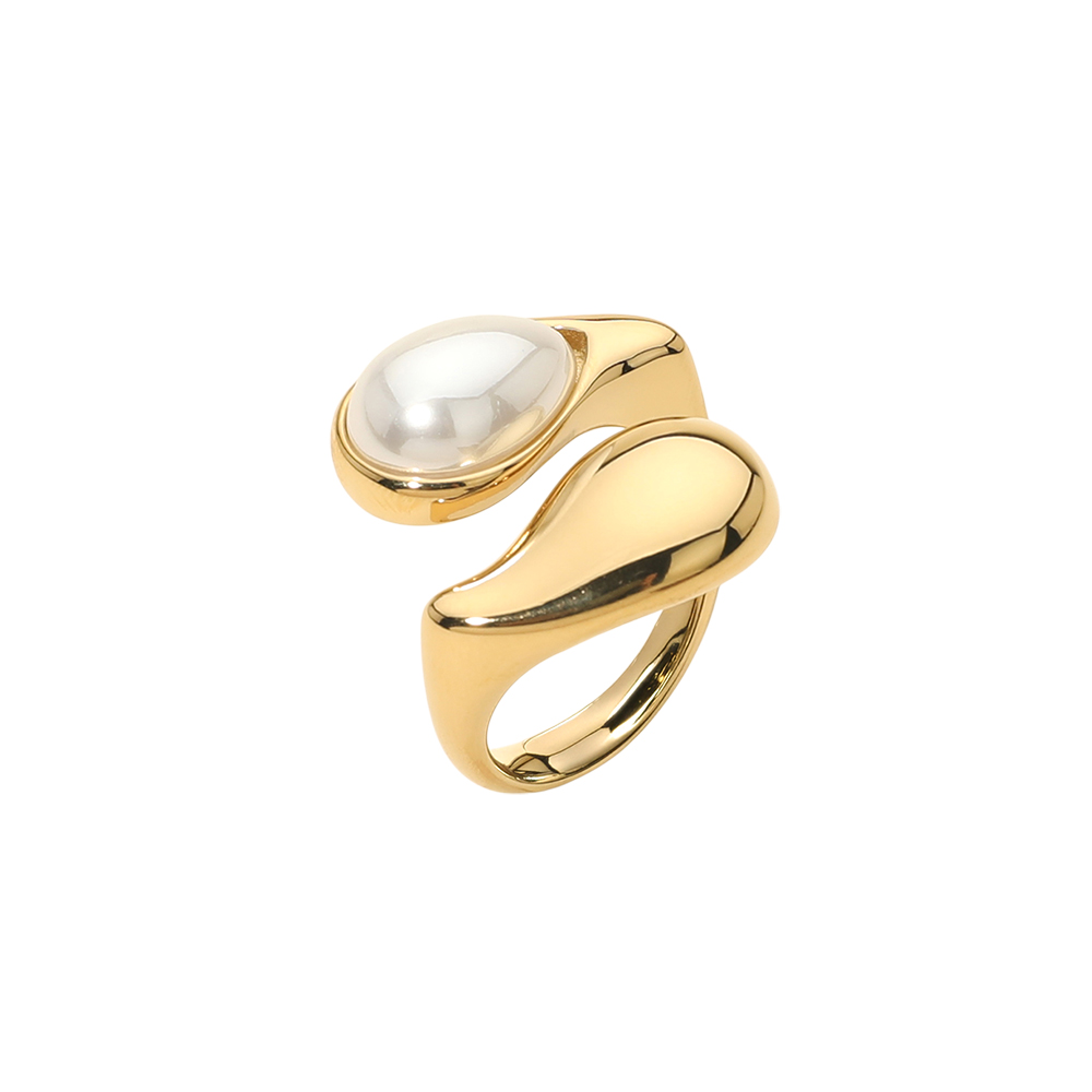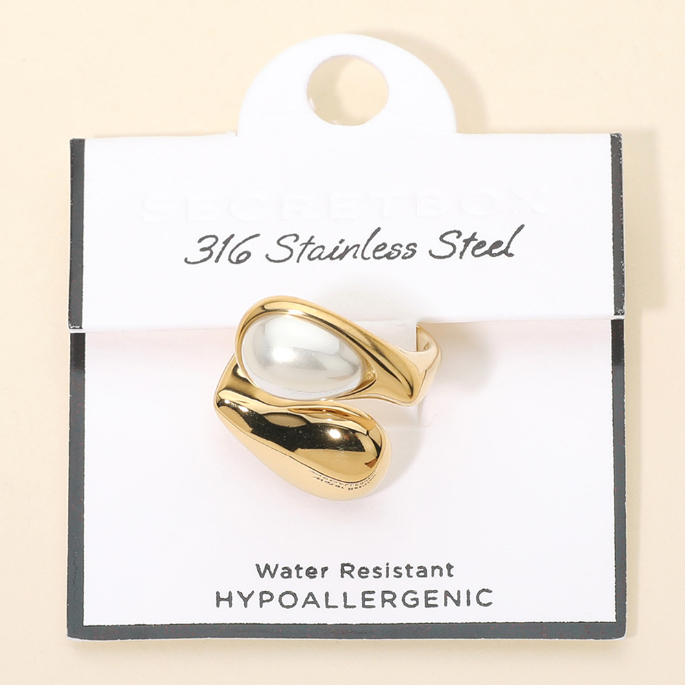 SECRET BOX_Stainless Steel Pearl Dome Accent Wrap Statement Ring SECRET BOX_Stainless Steel Pearl Dome Accent Wrap Statement Ring SECRET BOX_Stainless Steel Pearl Dome Accent Wrap Statement Ring