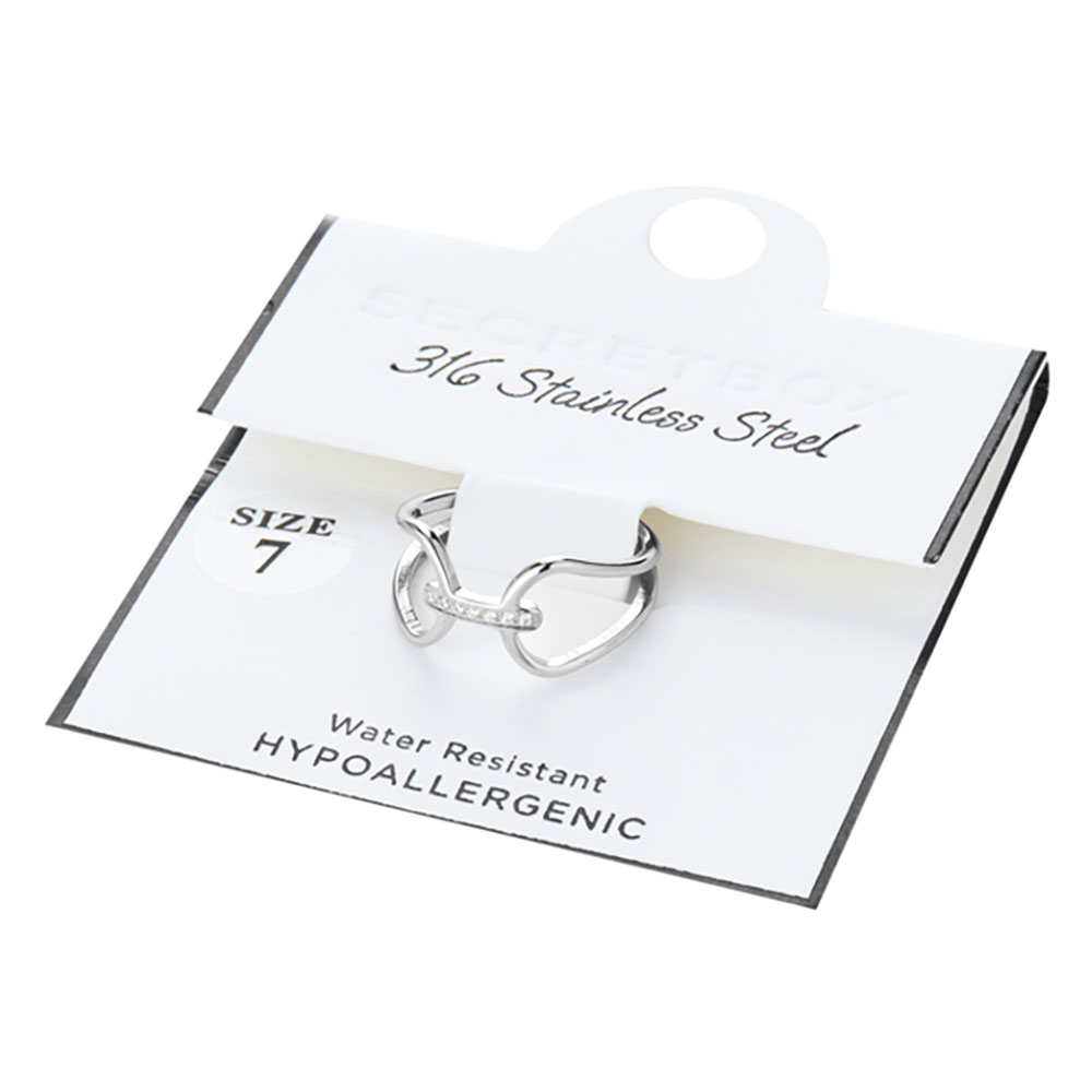 • Stylish stainless steel ring featuring a delicate crystal-accented bar. Hypoallergenic and durable, perfect for romantic or everyday wear with a modern minimalist touch.