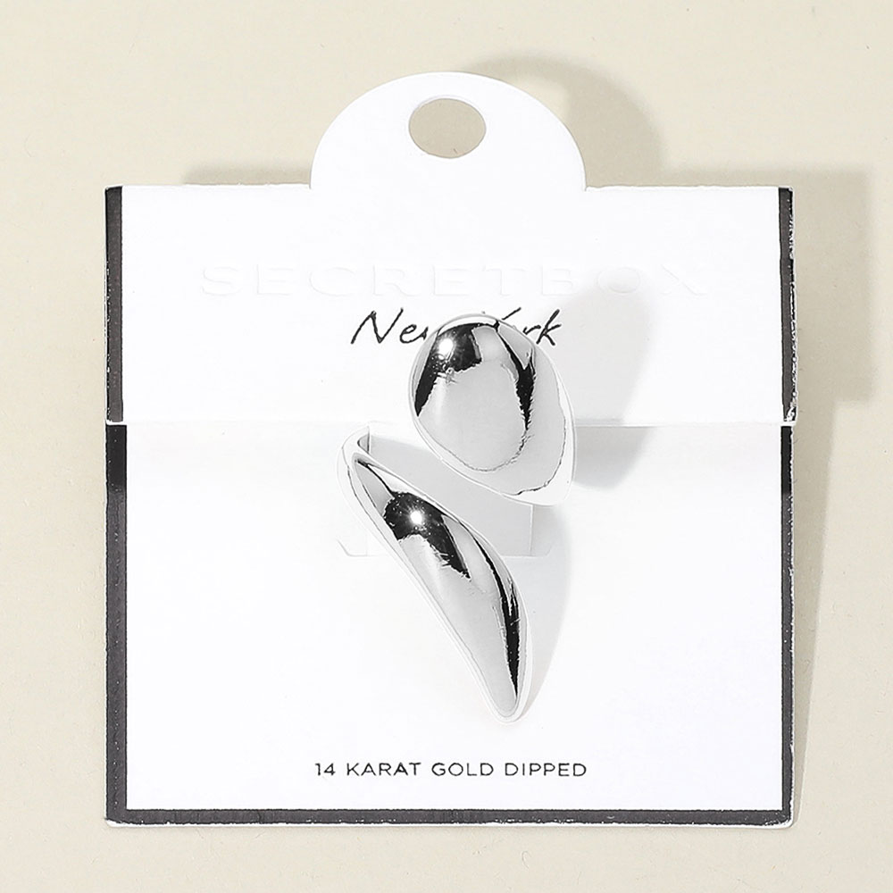 Details • Size : 1.4" H • Adjustable • Contemporary adjustable wrap ring featuring a sleek sculpted silhouette. A bold statement piece that combines modern elegance with artistic flair, perfect for elevating any look effortlessly. • Sterling Silver Dipped