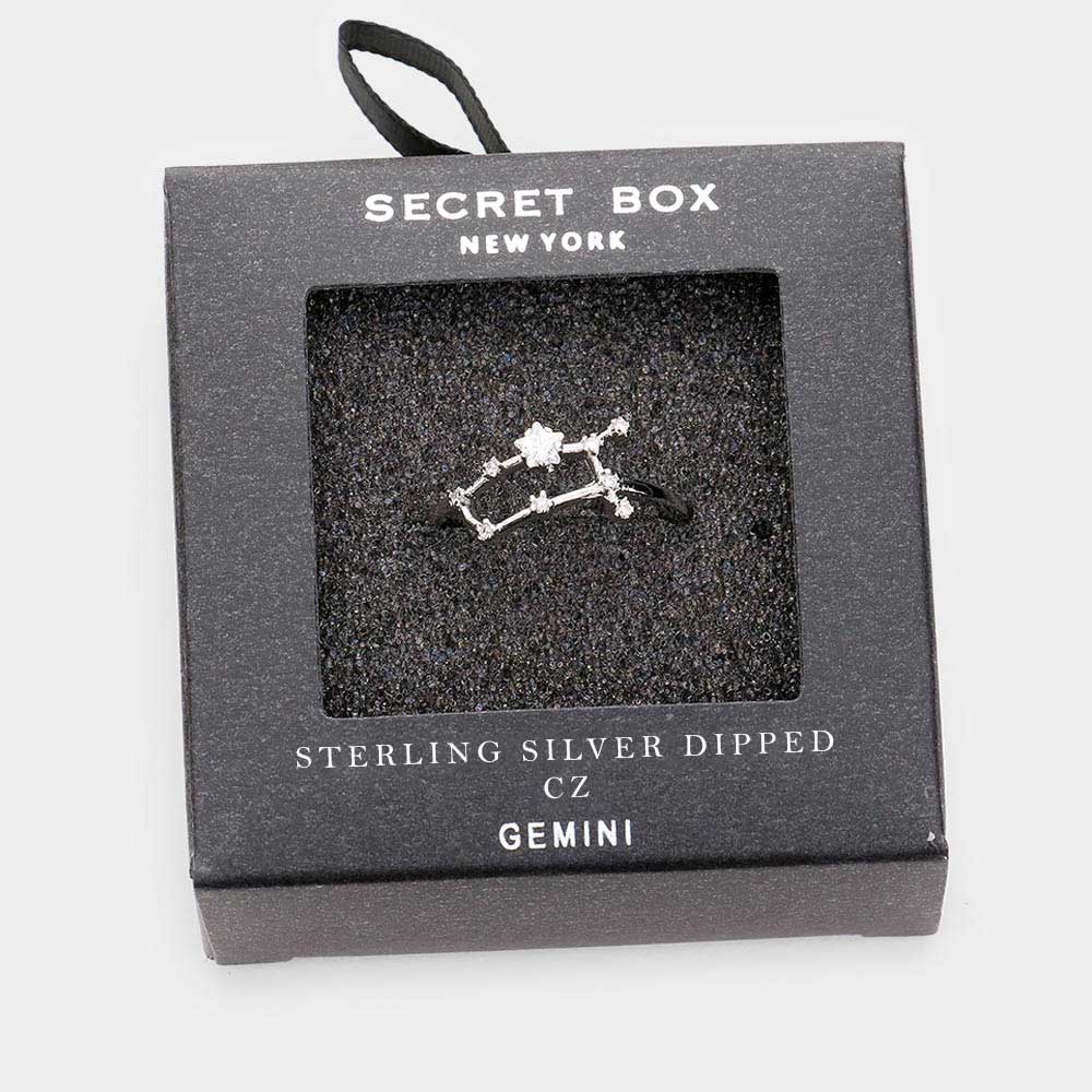 Secret Box _ Sterling Silver Dipped CZ Zodiac Sign Gemini Ring
