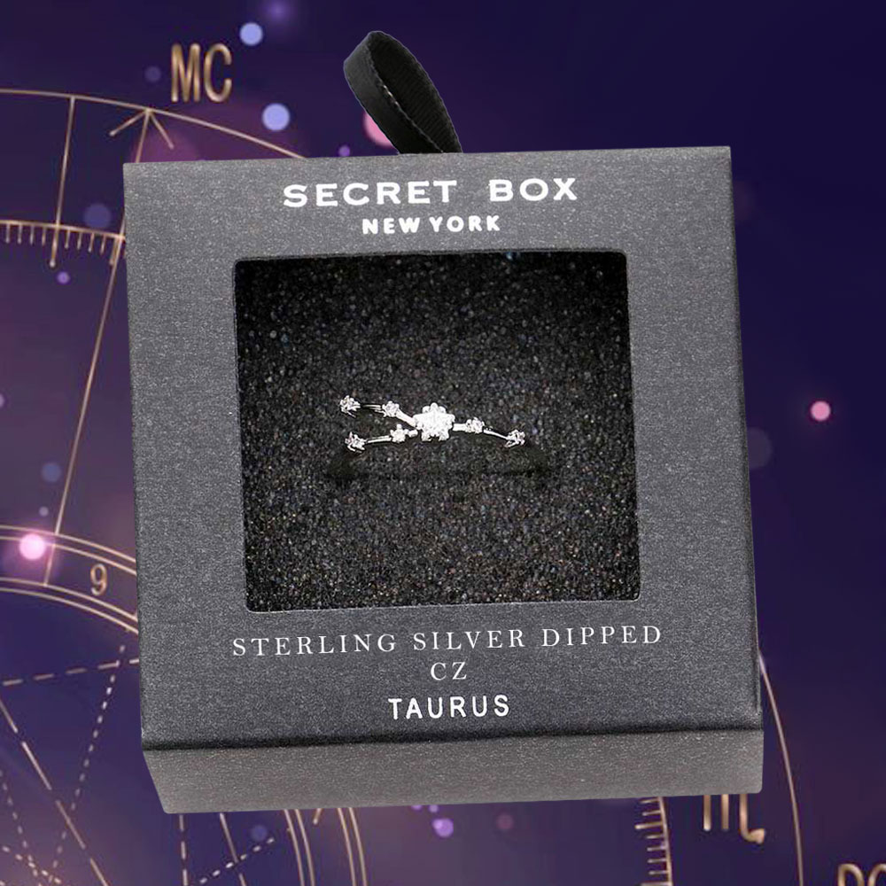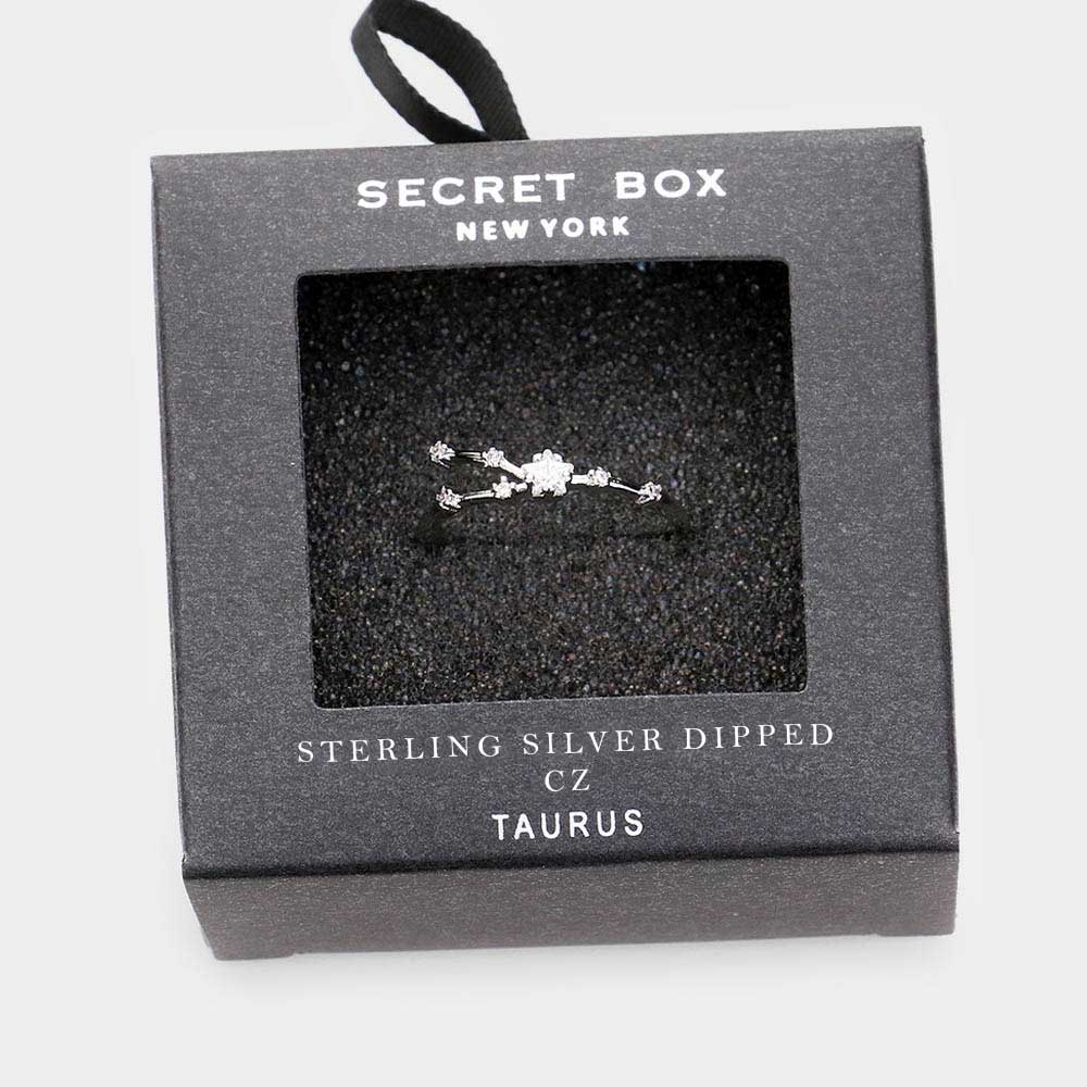Secret Box _ Sterling Silver Dipped CZ Zodiac Sign Taurus Ring