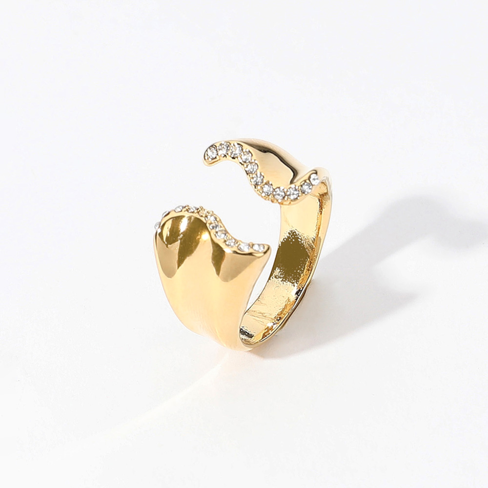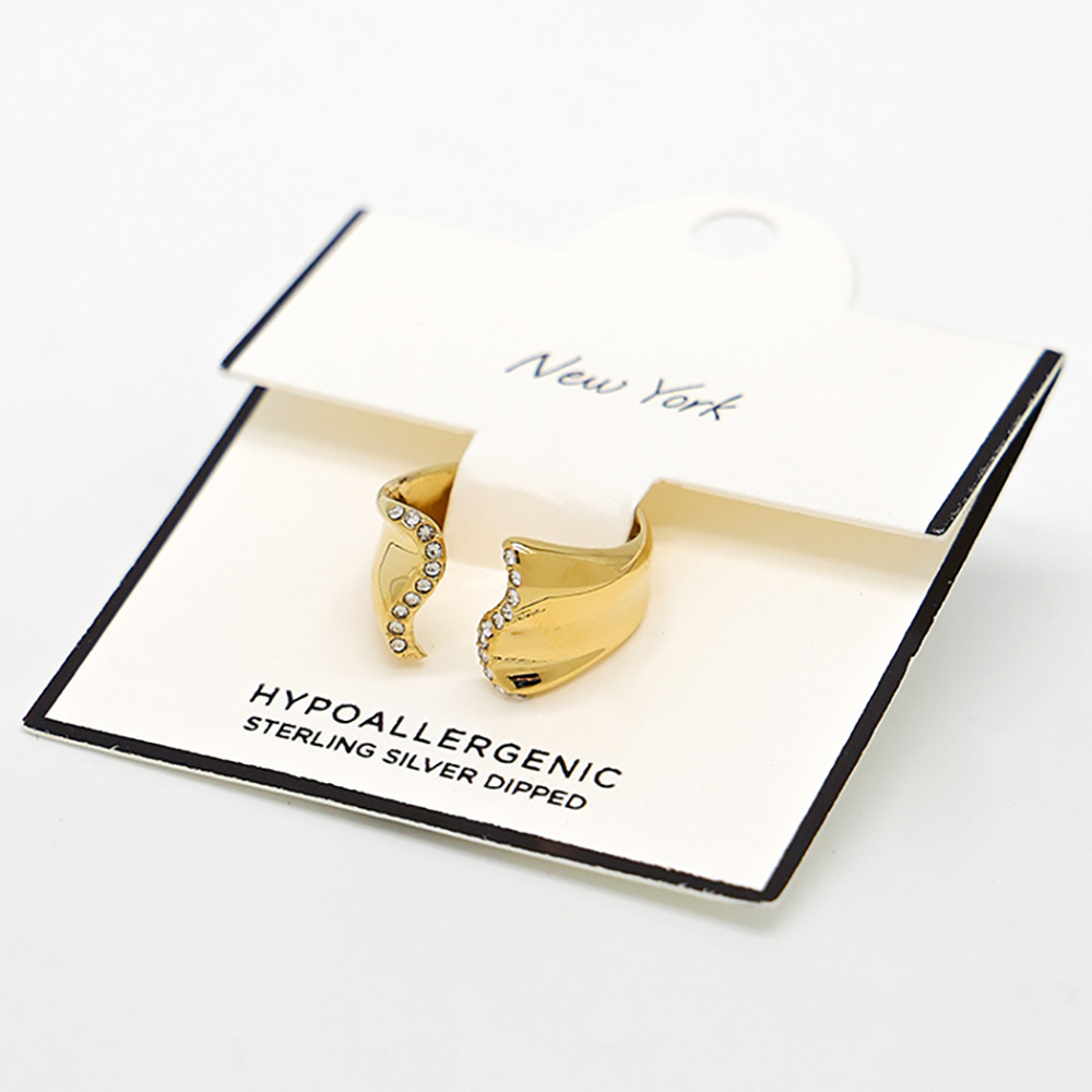 SECRET BOX_Sterling Silver Dipped Hypoallergenic Stone Paved Wavy Tip Ring