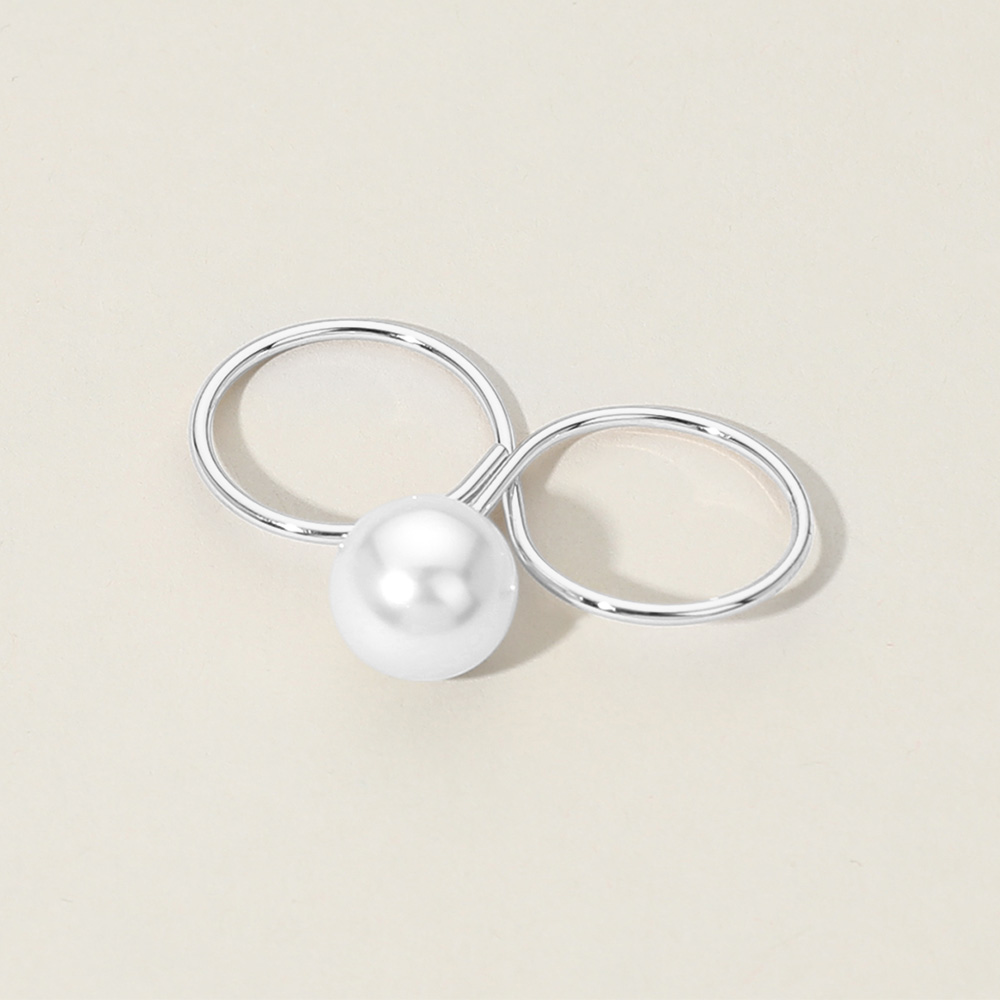 SECRET BOX_14K Gold Dipped Pearl Accented Two Finger Ring