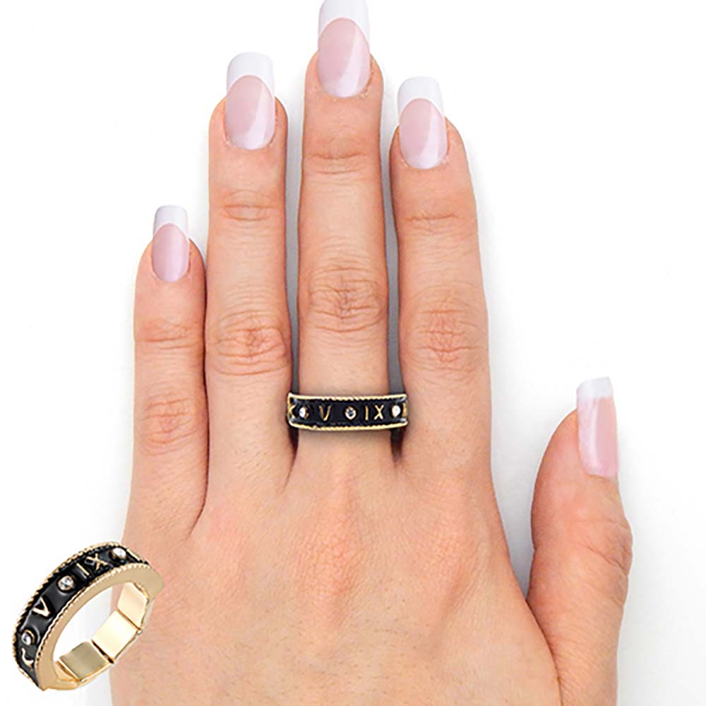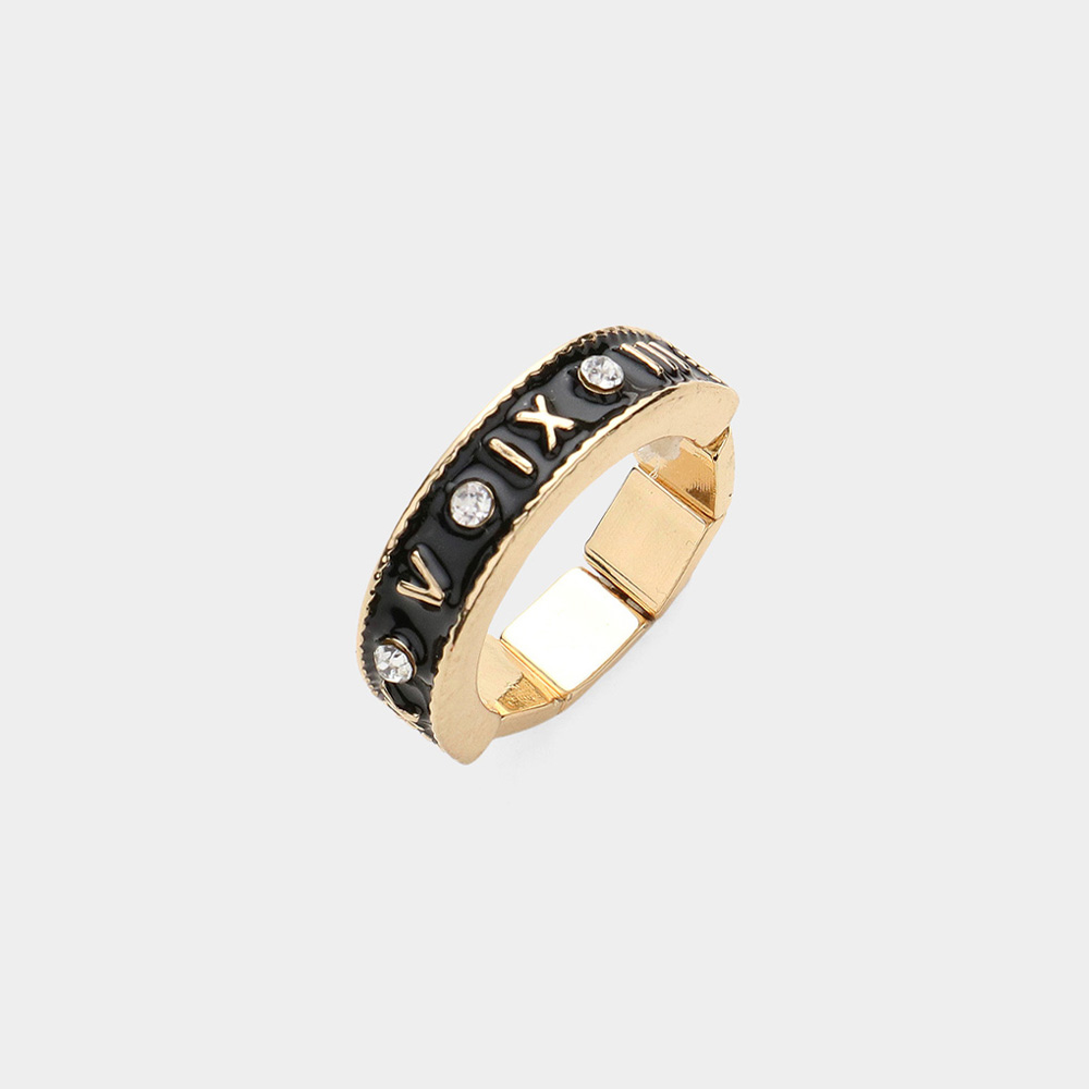 Stone Embellished Enamel Metal Roman Numerals Stretch Ring
