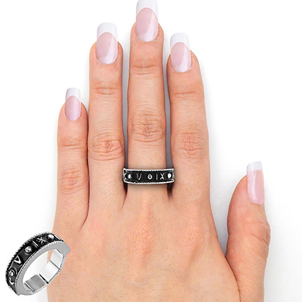 Stone Embellished Enamel Metal Roman Numerals Stretch Ring