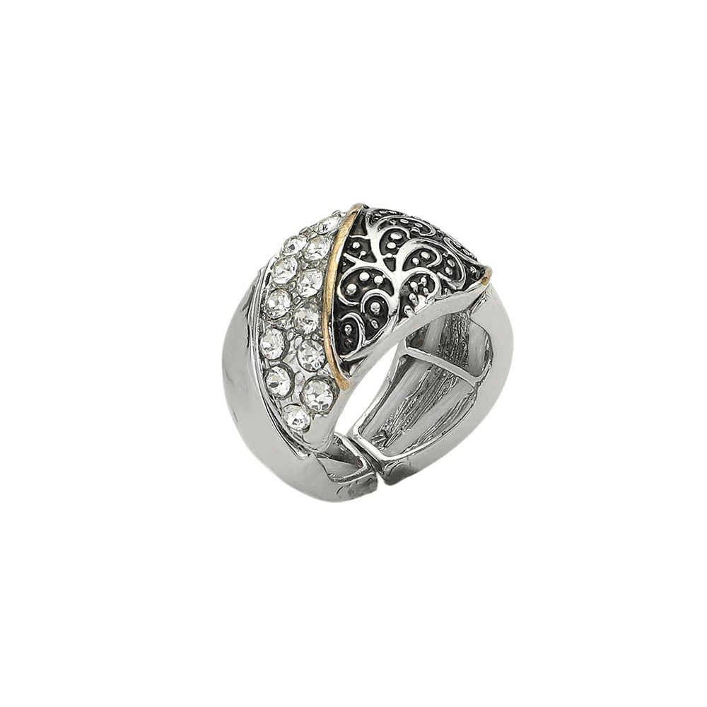 • Striking dome ring featuring intricate filigree patterns and shimmering crystal accents. A bold yet elegant accessory that adds a refined touch to both everyday and formal looks.