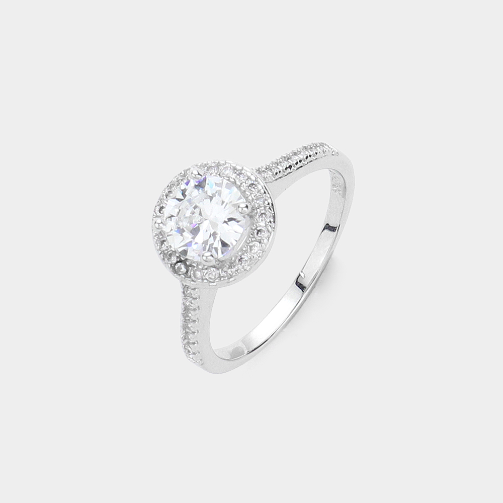 18K White Gold Plated Round CZ Stone Accented Halo Ring
