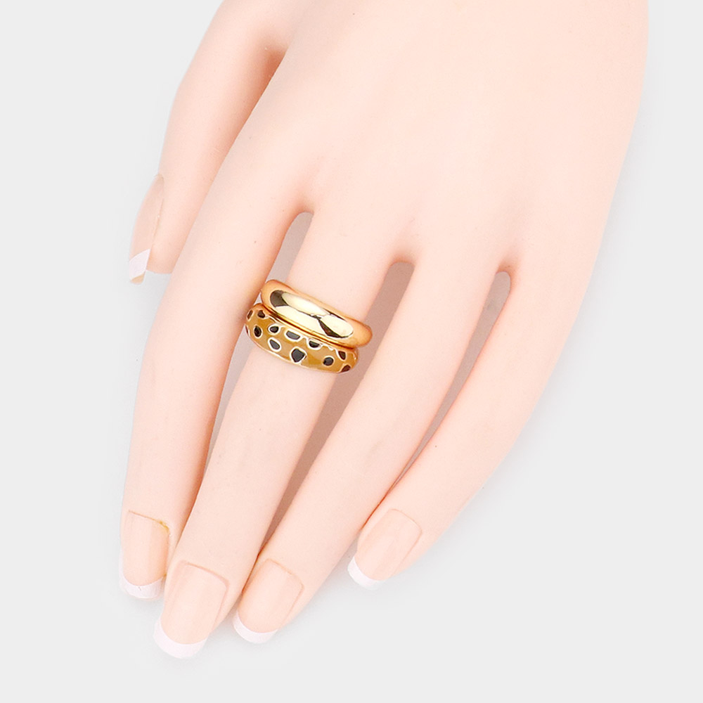 2PCS - Enamel Cheetah Patterned Metal Band Mixed Rings