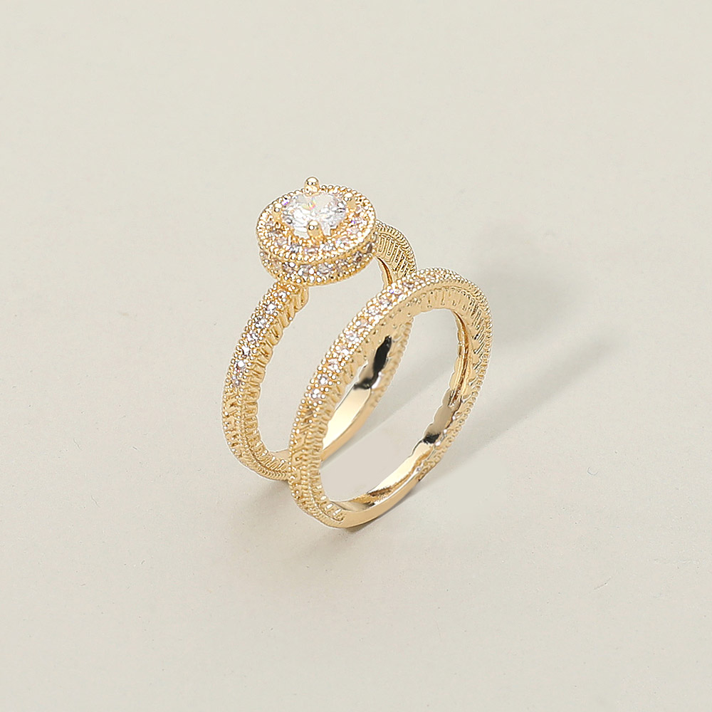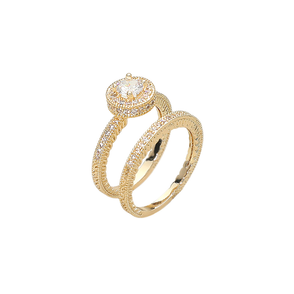 Details • Size : 0.4" H, 0.1" H • Stylish two piece ring set featuring an oval halo cubic zirconia centerpiece complemented by a matching pave band. The elegant design radiates sophistication, perfect for engagements, weddings, or elevating everyday looks with a touch of timeless sparkle. • CZ Cubic Zirconia
