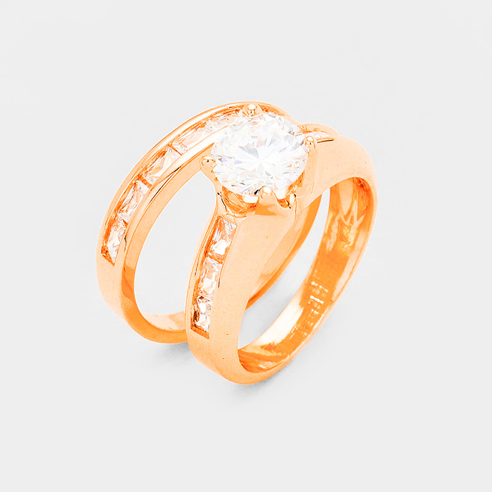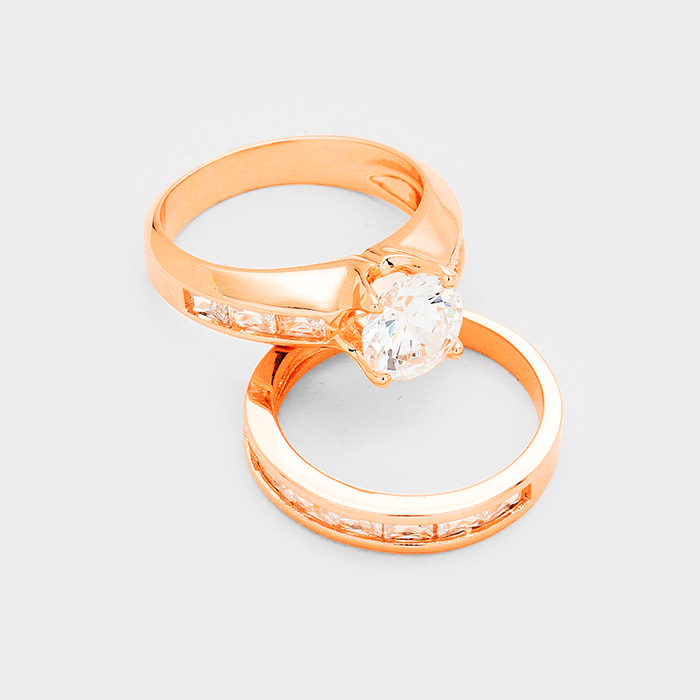 2PCS Rose Gold Plated CZ Round Stone Detail Ring