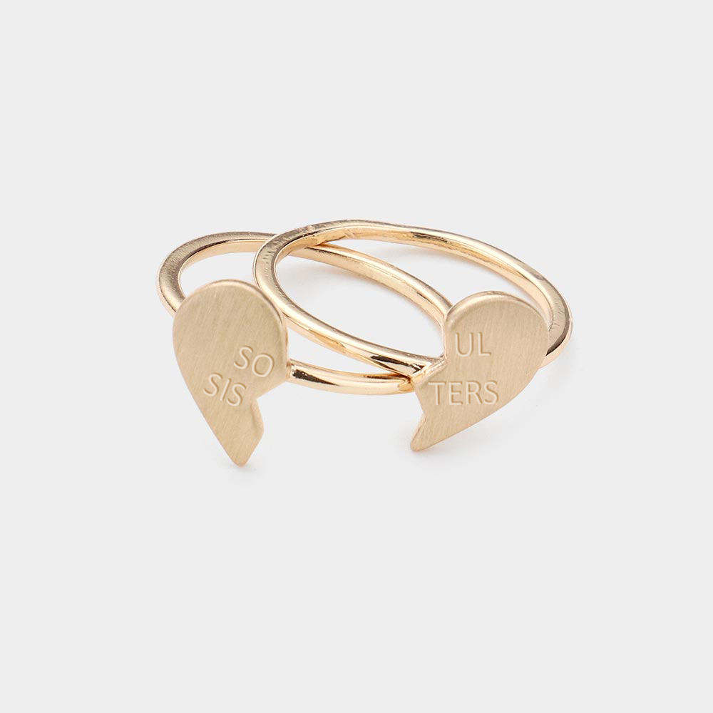 2PCS - SOUL SISTERS Brass Metal Broken Heart Rings