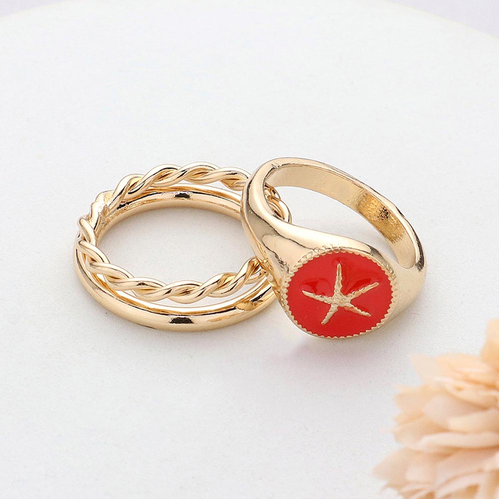 2PCS - Starfish Accented Enamel Round Split Metal Mixed Ring Set