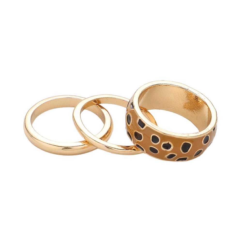 3PCS - Enamel Cheetah Patterned Metal Band Mixed Rings