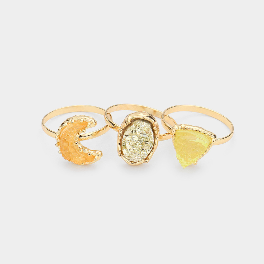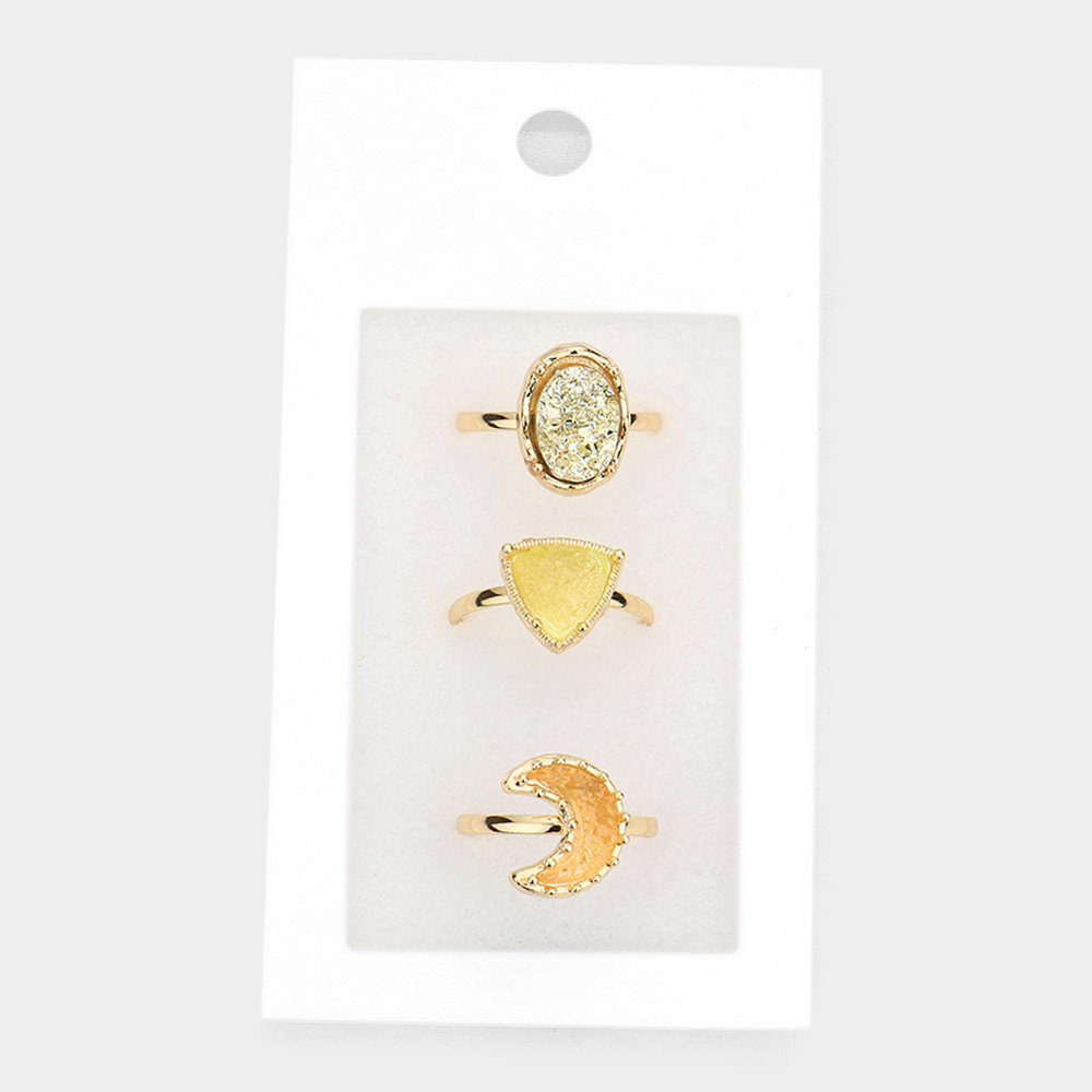 3PCS - Geometric Druzy Crescent Moon Mixed Rings