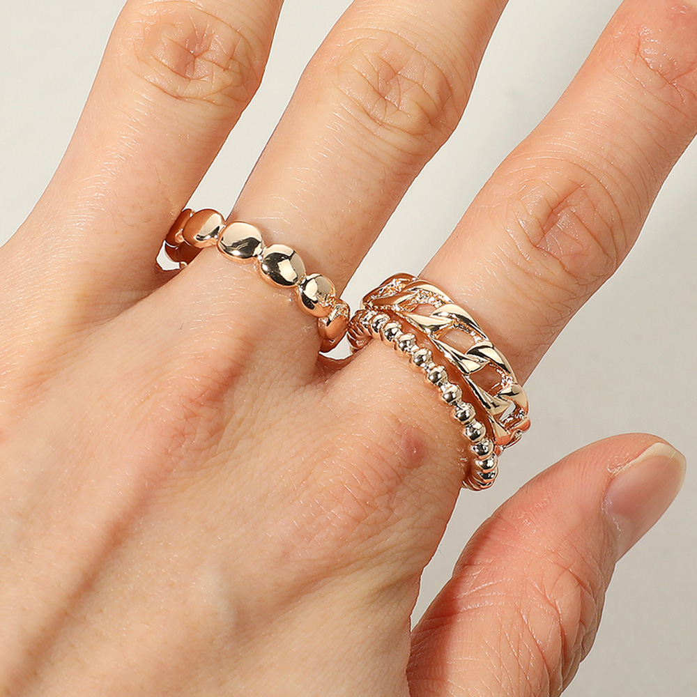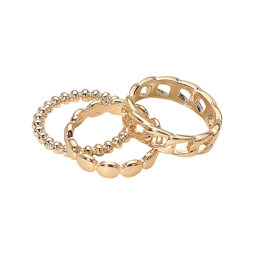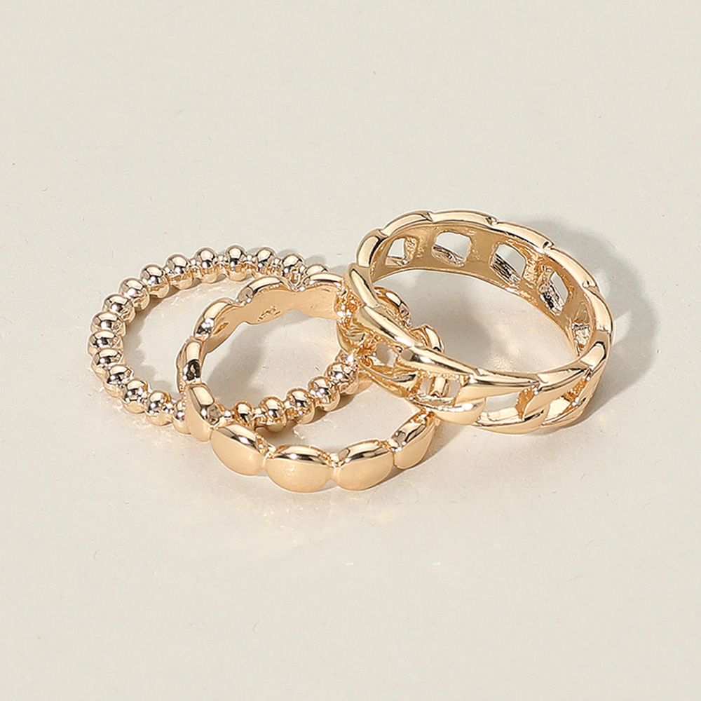 Details • Size : 0.1" - 0.25" H (size 8 Only) • Chic 3-piece ring set featuring beaded, dome, and chain-inspired designs. Ideal for stacking or wearing separately for a versatile, on-trend look perfect for any casual or dressy occasion. • Lead and Nickel Compliant