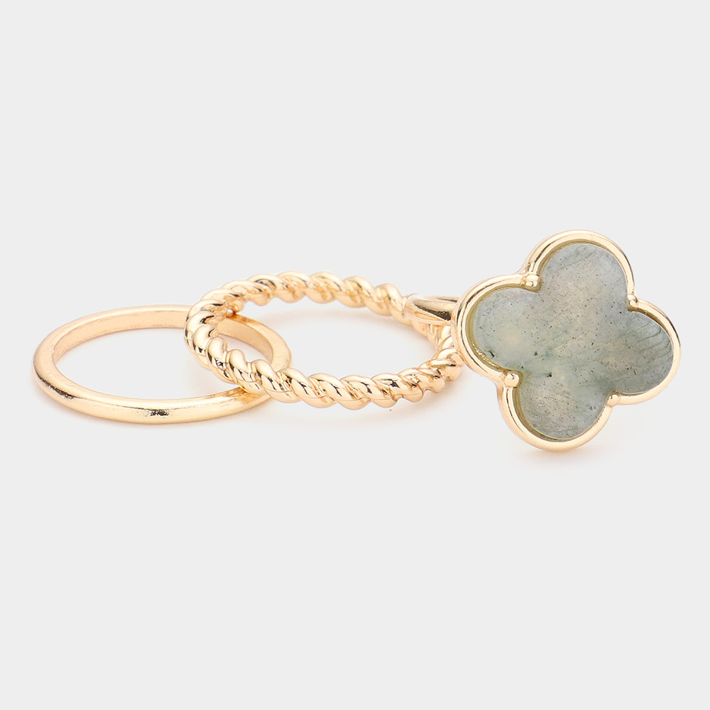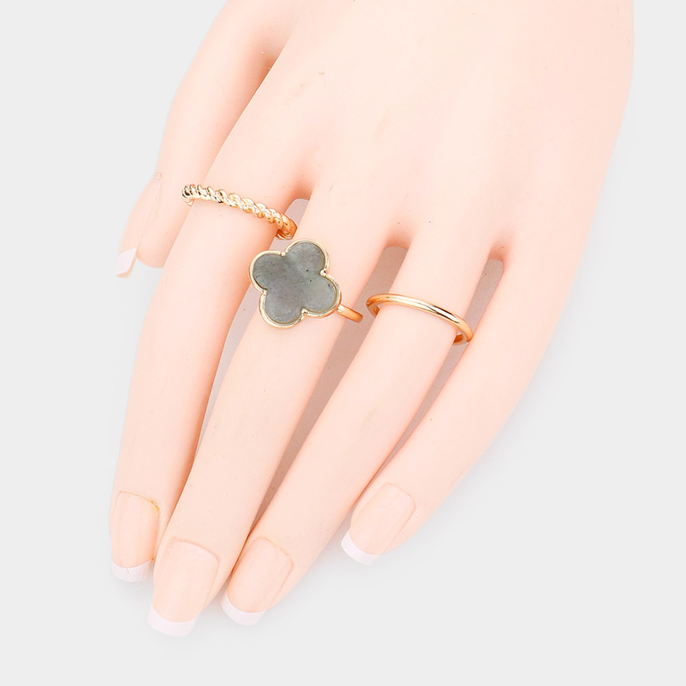 3PCS - Semi Precious Quatrefoil Metal Band Mixed Rings