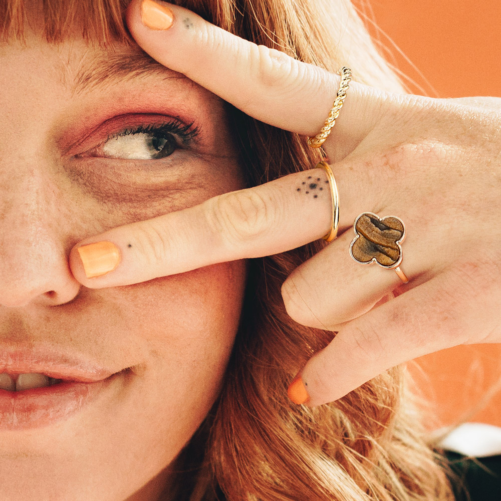 Details • Size : 0.1" H, 0.65" H (Size 7 Only) • Add a touch of charm with this dalmatian stone quatrefoil ring featuring a playful four-petal design. Lightweight and versatile, it’s perfect for stacking or wearing solo, bringing personality and a stylish edge to everyday outfits or special occasions. • Lead and Nickel Compliant