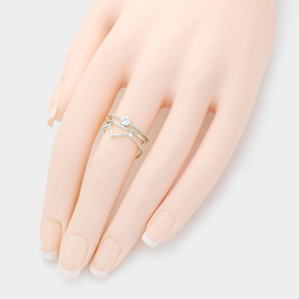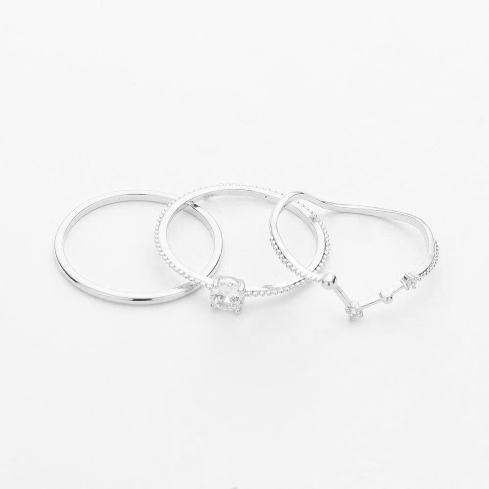 3PCS - Stone Embellished Brass Metal Mixed Rings