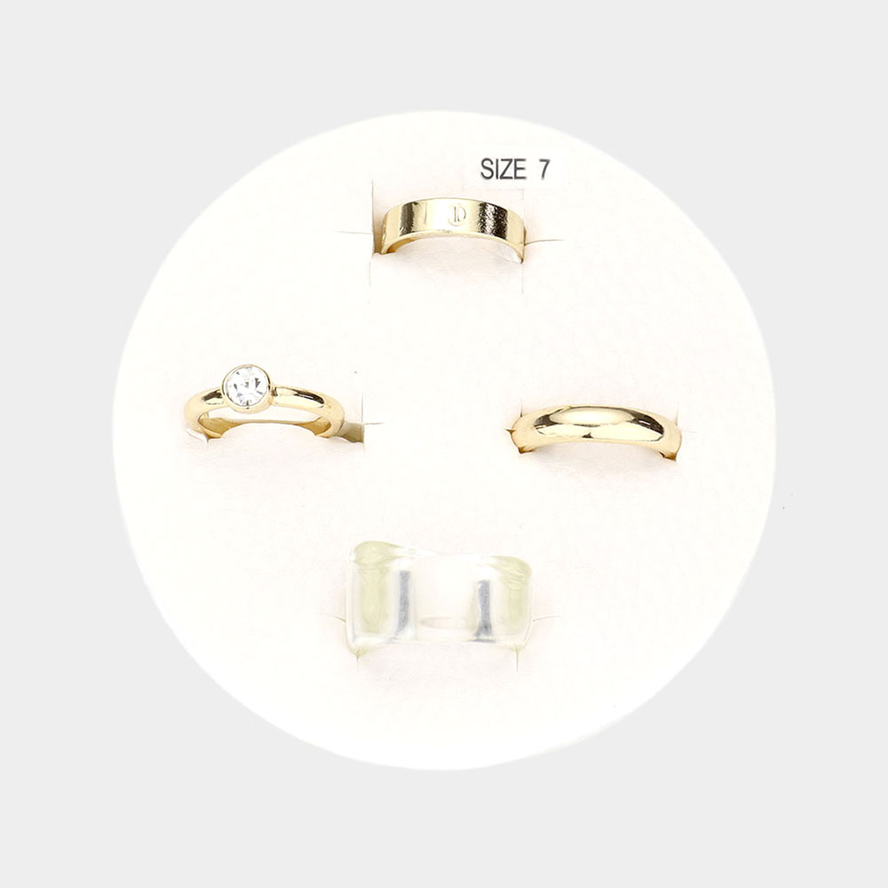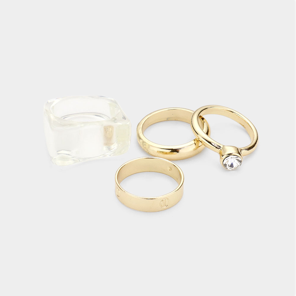 4PCS - Clear Lucite Stone Embellished Metal Band Mixed Rings
