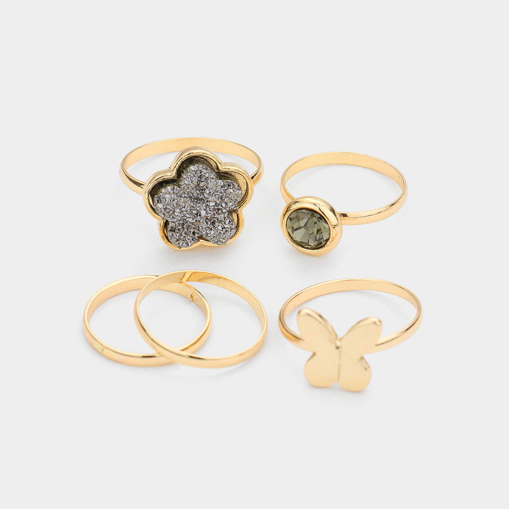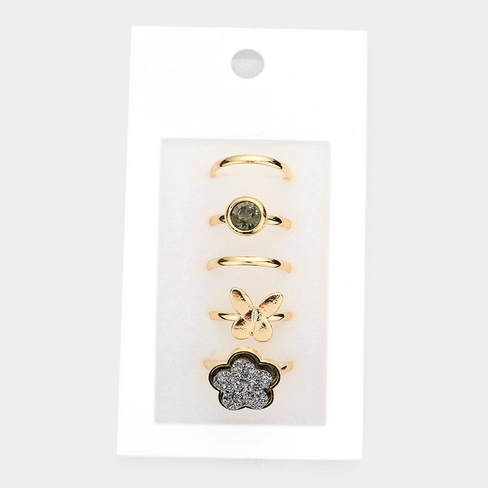 5PCS - Round Stone Metal Butterfly Druzy Flower Mixed Rings