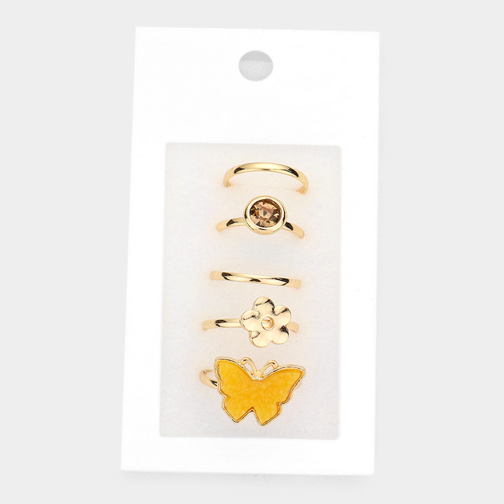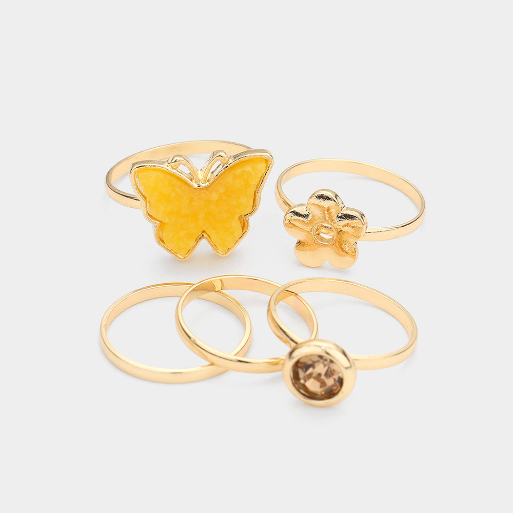 5PCS - Round Stone Metal Flower Druzy Butterfly Mixed Rings