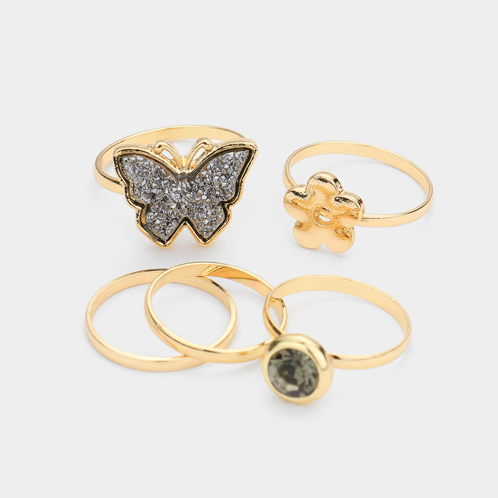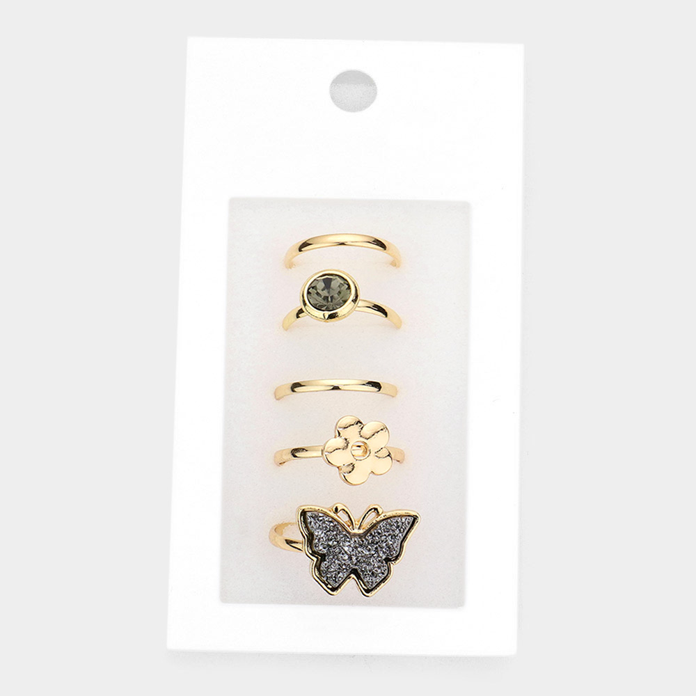 5PCS - Round Stone Metal Flower Druzy Butterfly Mixed Rings