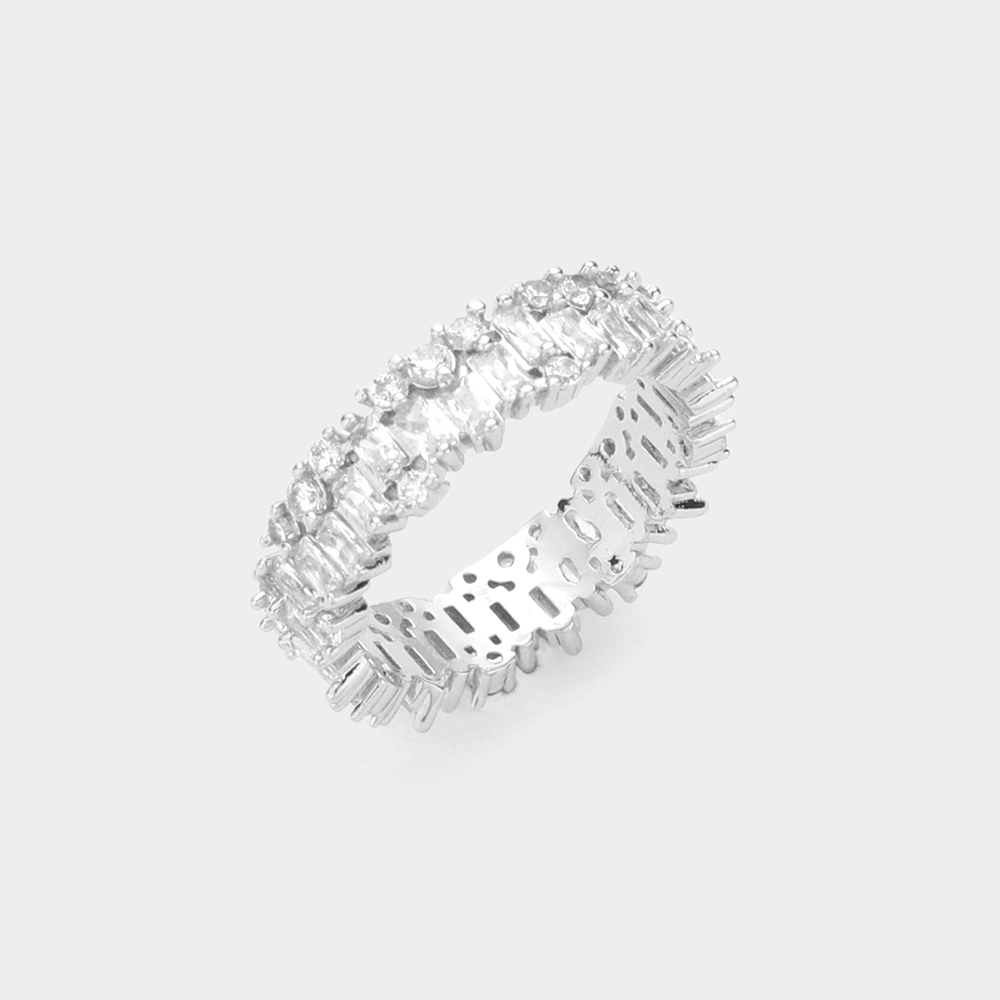 Baguette Round CZ Stone Eternity Ring
