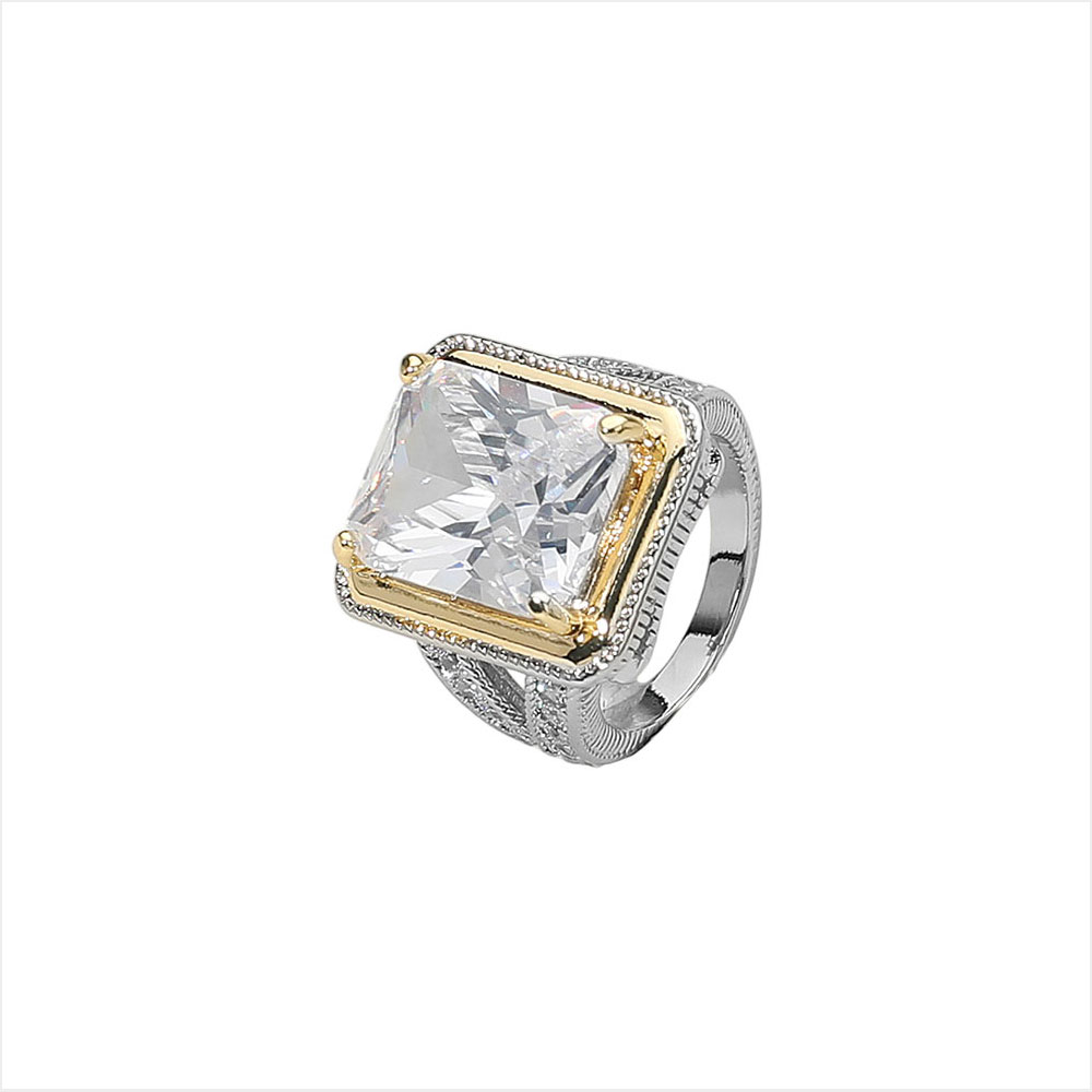 • A bold rectangular statement ring featuring a radiant centerpiece framed by textured detailing for an elevated, eye-catching finish. Its sculpted band adds depth and dimension, creating a striking accessory that enhances both special-occasion outfits and everyday style with refined brilliance.