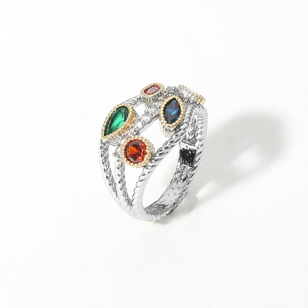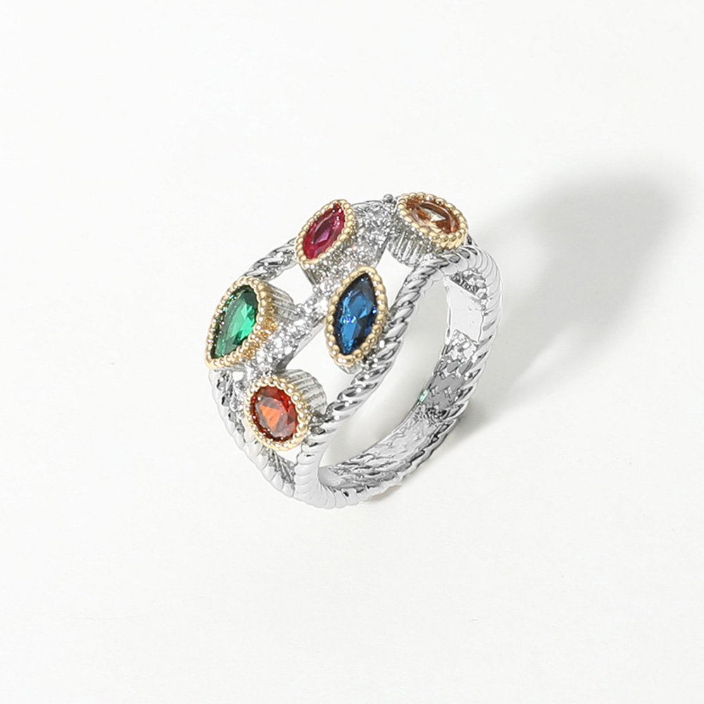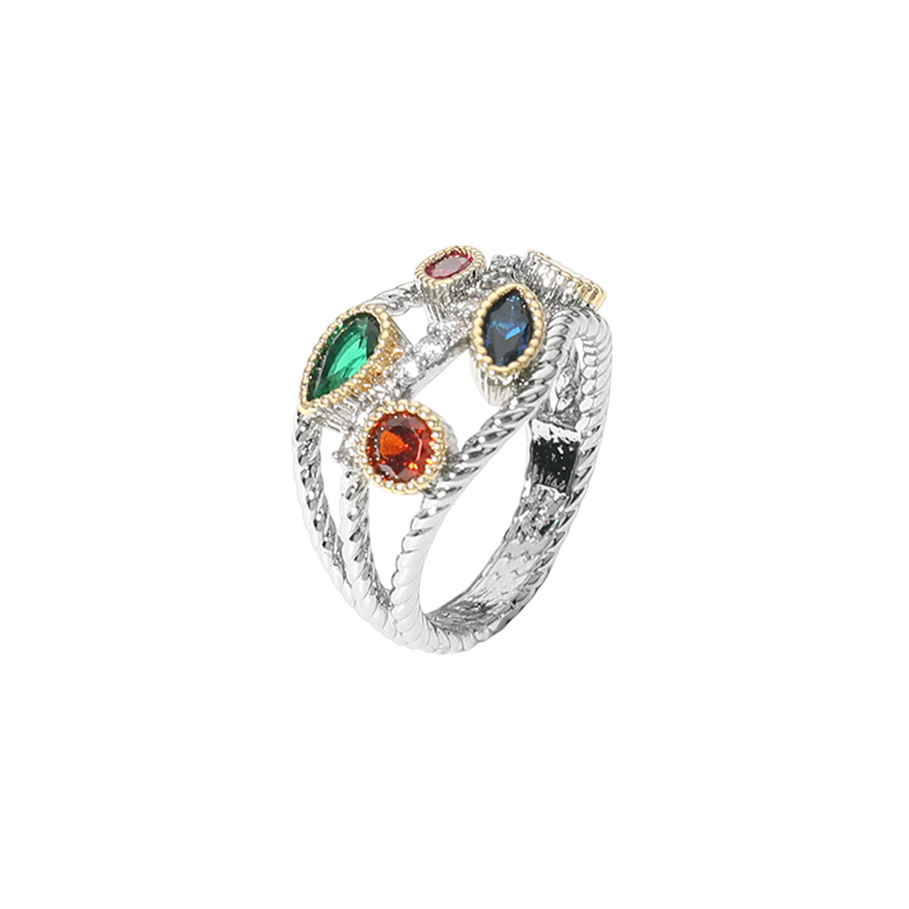 Details • Size : 0.6" H • Elegant layered ring featuring twisted bands set with marquise and round-cut stones. A sophisticated accessory that combines texture and sparkle, perfect for everyday elegance or adding a refined touch to special occasion looks. • CZ Cubic Zirconia