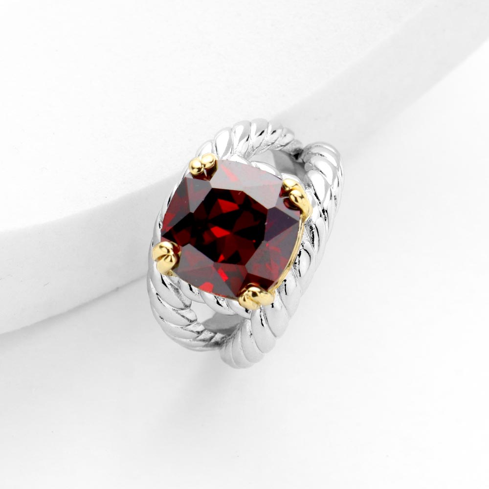 Details • Size : 0.6" H • Make a statement with this bold cushion-cut cz ring featuring a vibrant center stone set in an intricately braided band. Perfect for adding a pop of elegance to any outfit, this sophisticated accessory blends timeless design with modern flair, making it ideal for special occasions or everyday glam. • CZ Cubic Zirconia