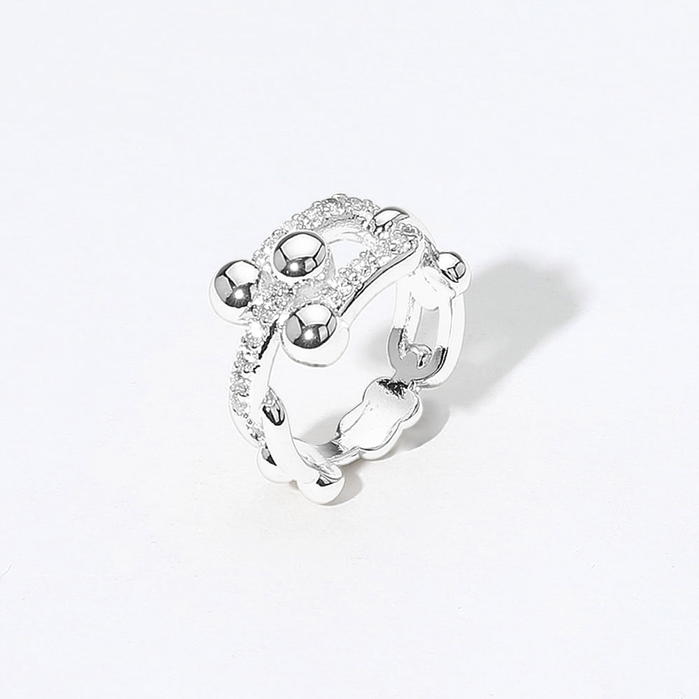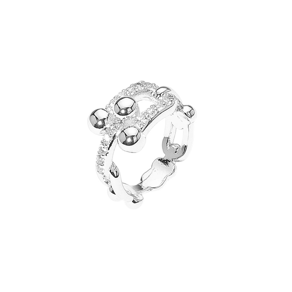 • Elegant open band ring with CZ accents and bold bead detailing. A stylish piece perfect for everyday wear or special occasions.