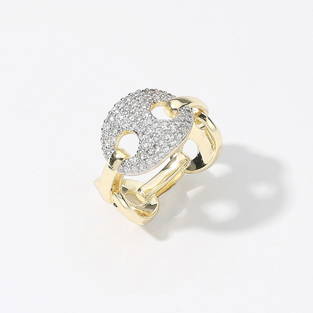• Statement-making chain link ring featuring a CZ pavĂ© smiley face centerpiece. Trendy, bold, and fun—perfect for gifting or adding playful edge to your
