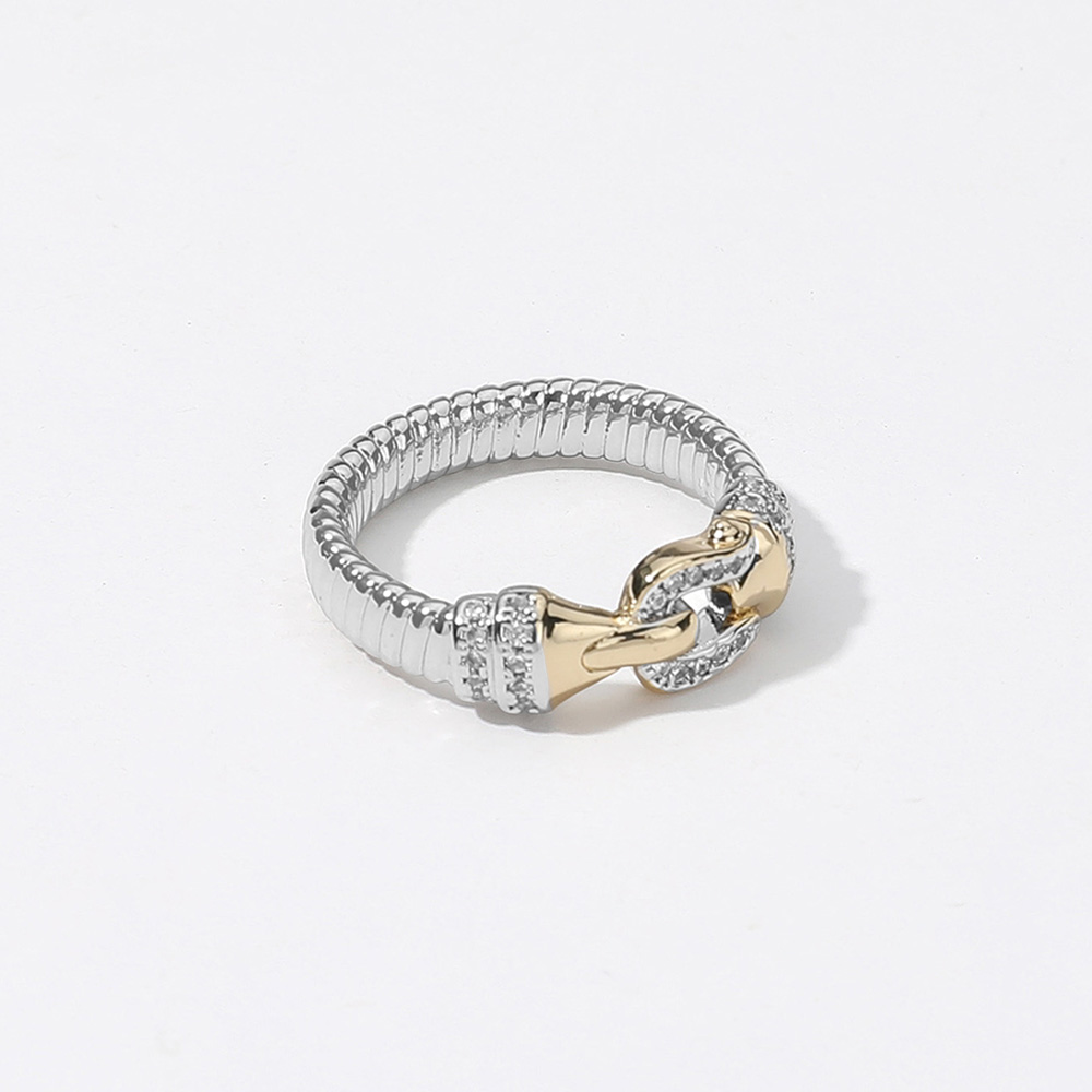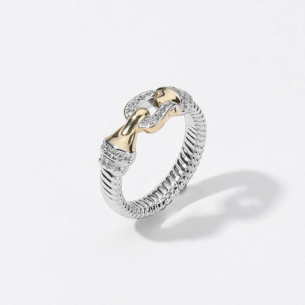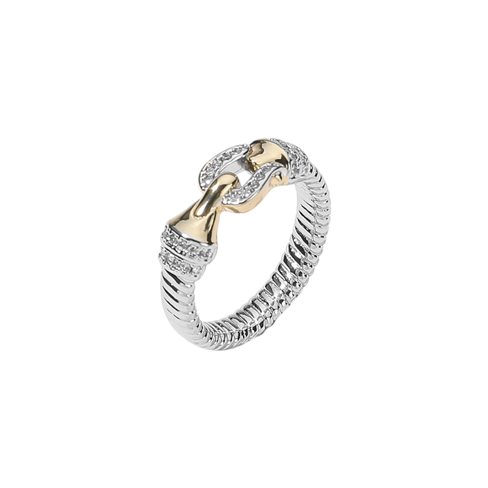 Details • Size : 0.25" H • Elevate your style with this two-tone link design ring, featuring a sleek band accented with sparkling details. Its modern yet timeless look makes it the perfect statement piece for stacking, everyday wear, or gifting, offering a touch of elegance to any outfit. • CZ Cubic Zirconia