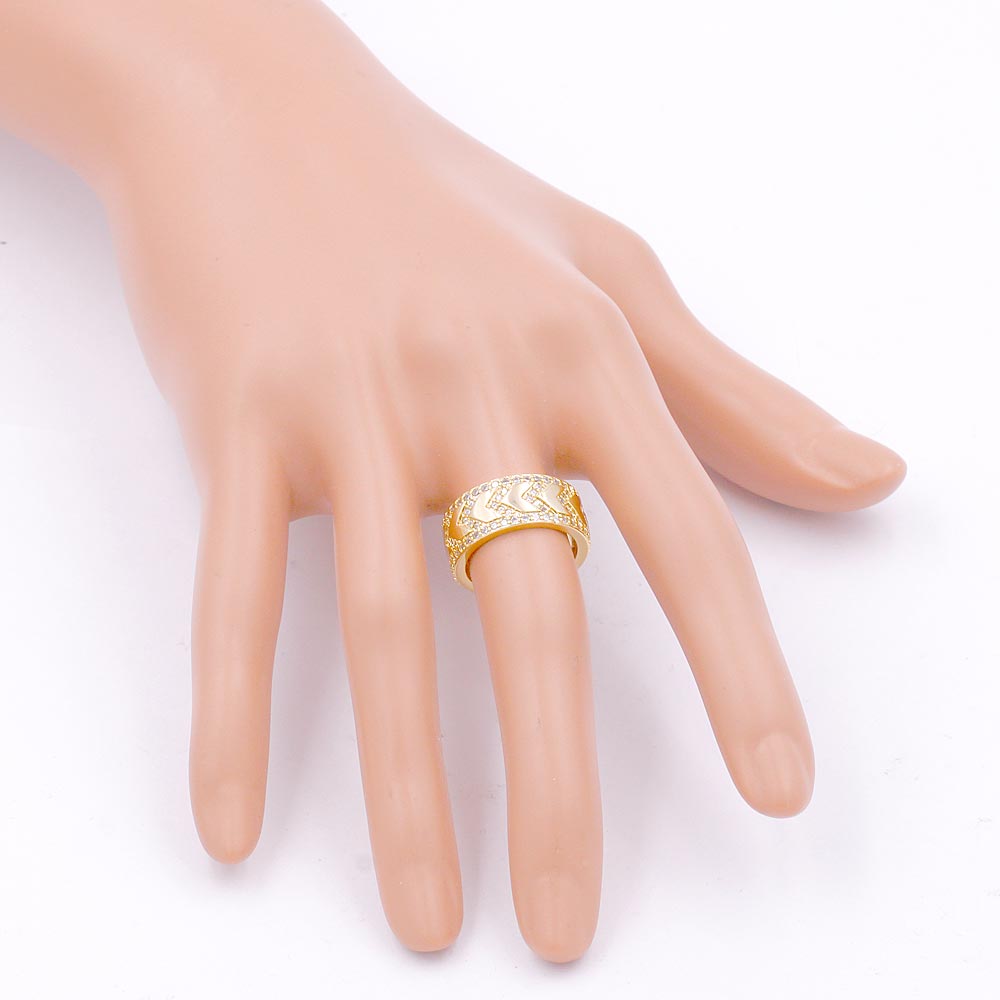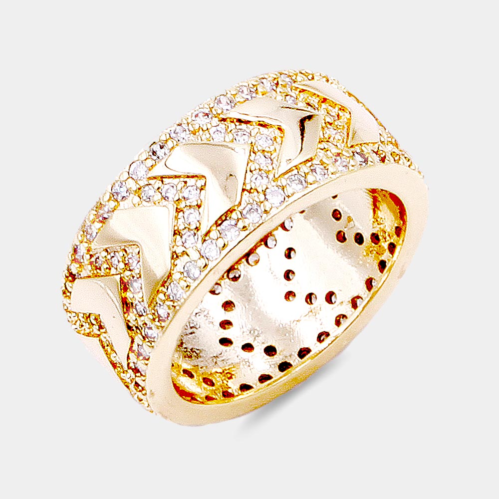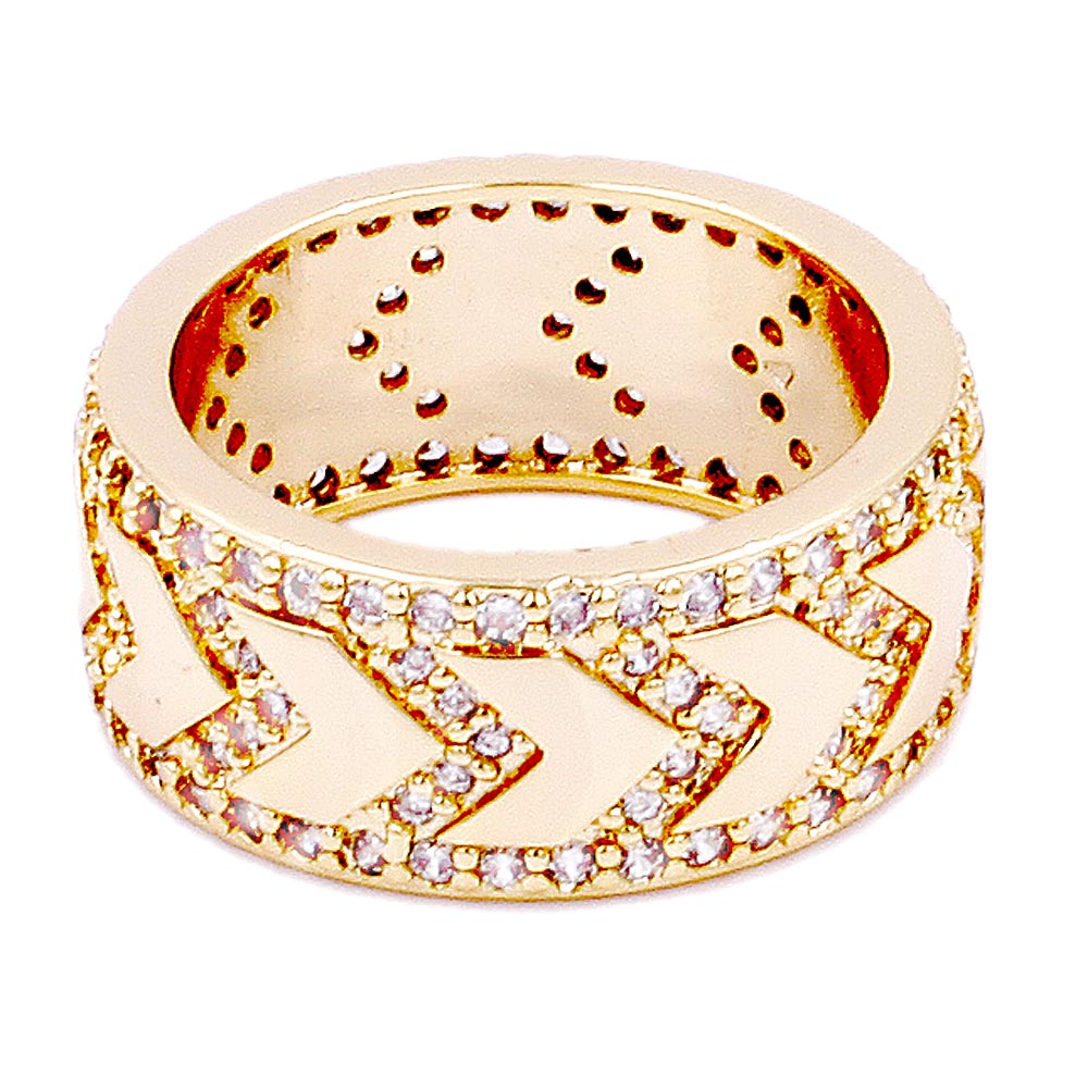 Gold Plated CZ Embellished Metal Chevron Ring