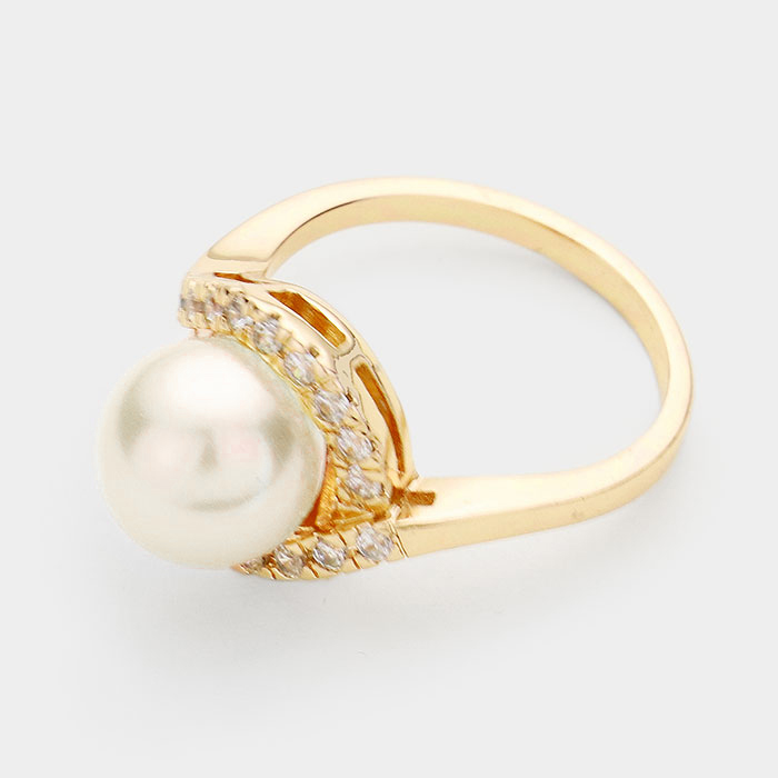 Pearl Accented CZ Gold Dipped Ginkgo Leaf Dangle Earrings