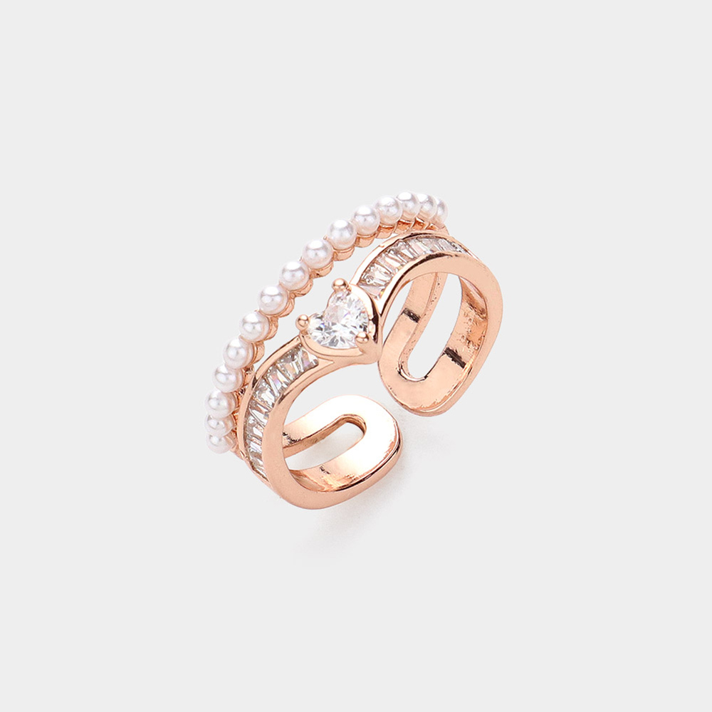 Metal Cross Pearl Open Heart Charm Pendant Paperclip Chain Necklace