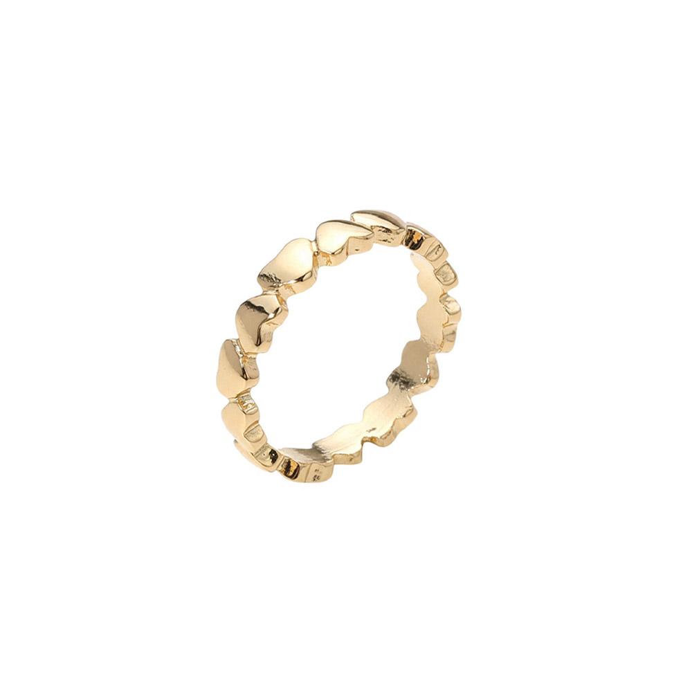 Details • Size : 0.2" H • Size 6 Only • Charming ring featuring a continuous row of mini heart shapes for a sweet and modern look. Perfect for stacking or wearing alone, this delicate piece adds a touch of romance and everyday elegance to any outfit, making it an ideal gift or wardrobe staple. • Lead and Nickel Compliant