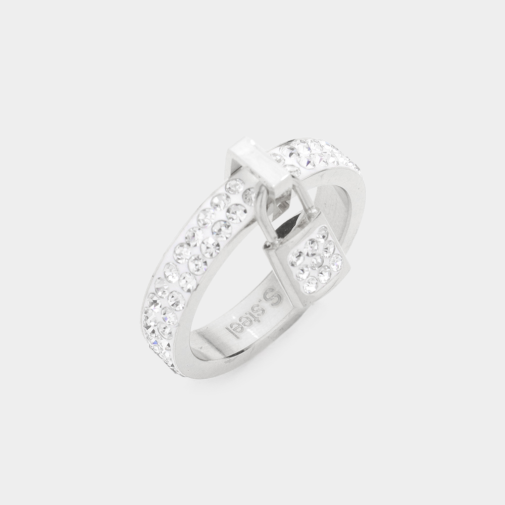 Rhinestone Embellished Lock Dangle Stainless Steel Ring