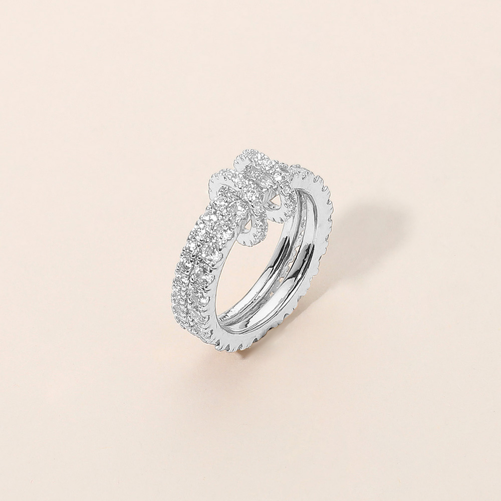 Details • Size : 0.4" H (Size 7 Only) • Shine with this interlocking crystal band ring set, featuring a chic design and sparkling accents. Perfect for stacking or wearing together, these elegant rings add timeless sophistication and modern style to any jewelry collection. • Lead and Nickel Compliant • Brass