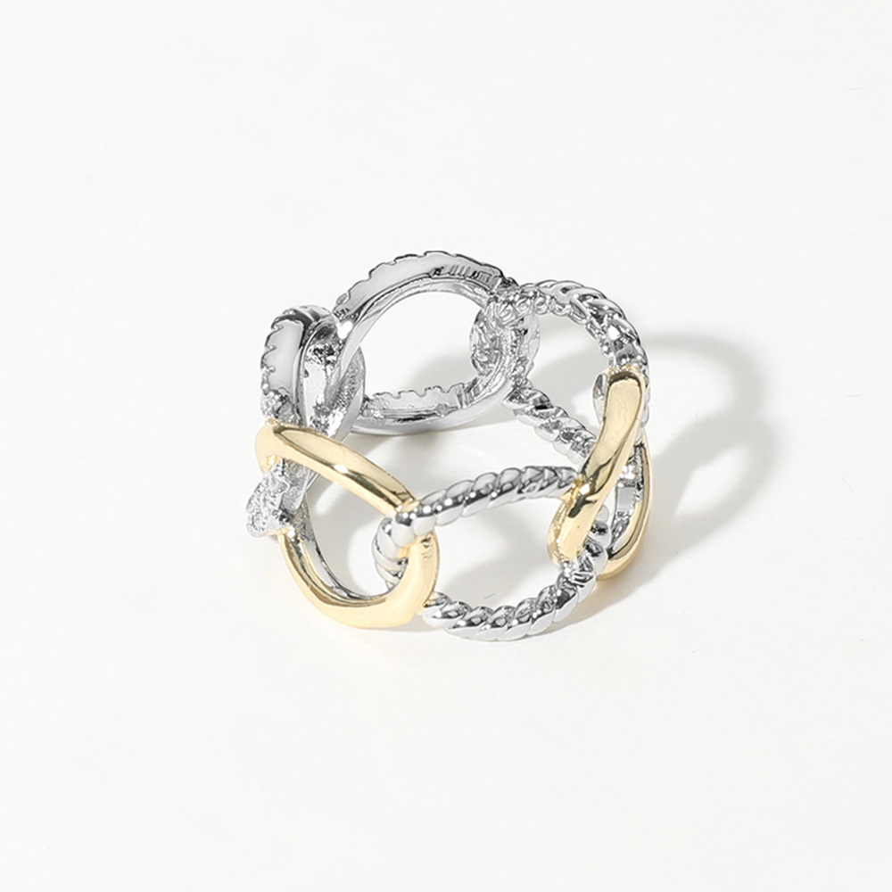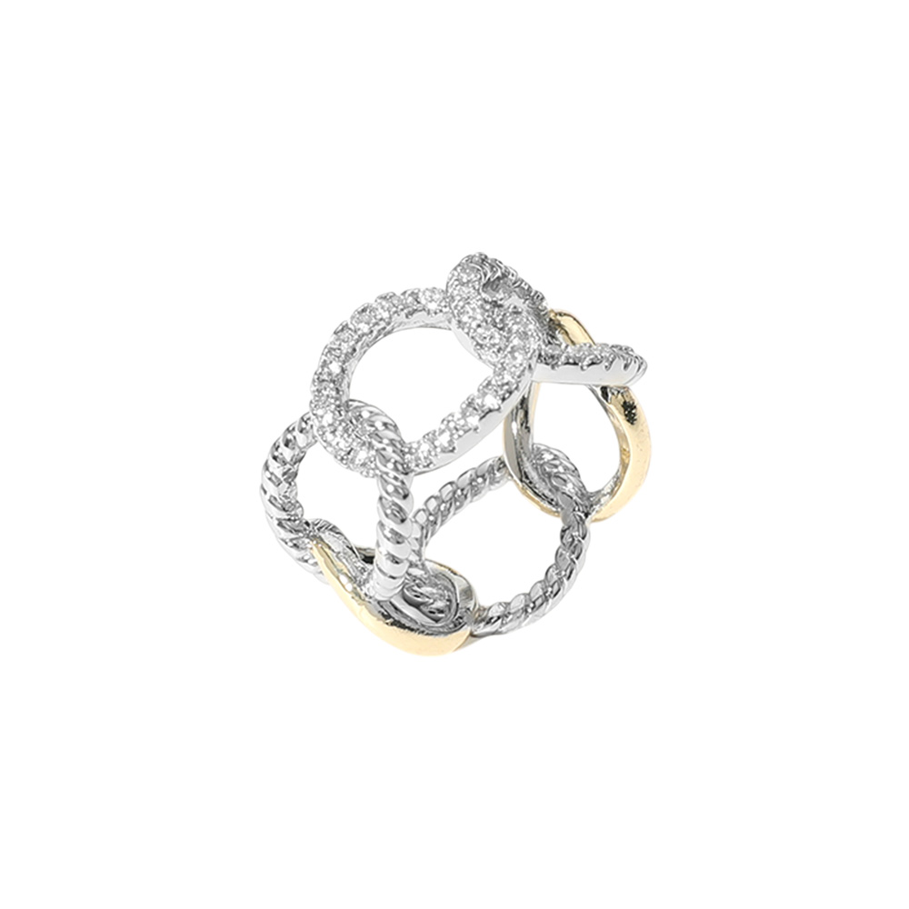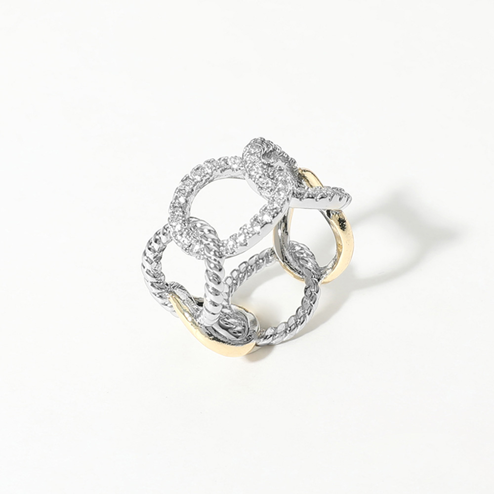 • Bold open chain design ring with sparkling CZ accents and dual-tone finish. Fashionable, hypoallergenic, and perfect for adding a statement to any outfit with timeless elegance.