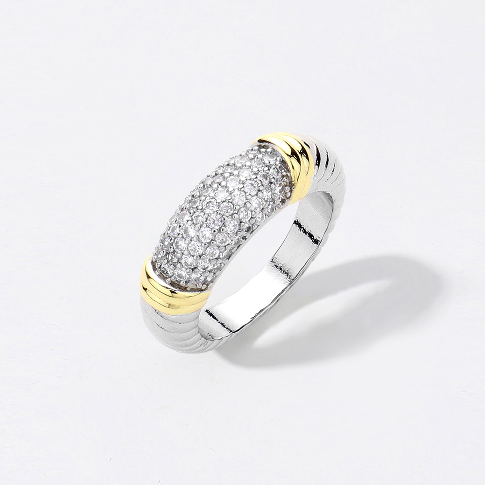 Two Tone CZ Stone Paved Ring
