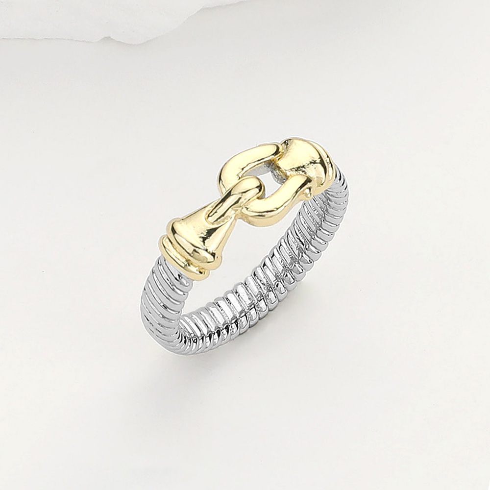 Two Tone 14K Gold Plated CZ Stone Paved Square Charm Bracelet