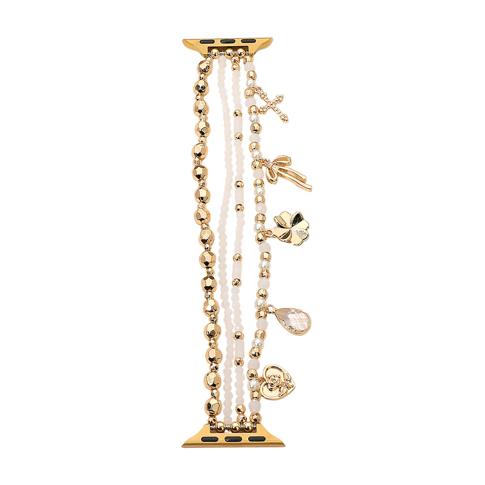 Bow Clover Heart Cross Charm Dangle Floral Ceramic Ball Pearl Beaded Multi Layered Apple Watch Band