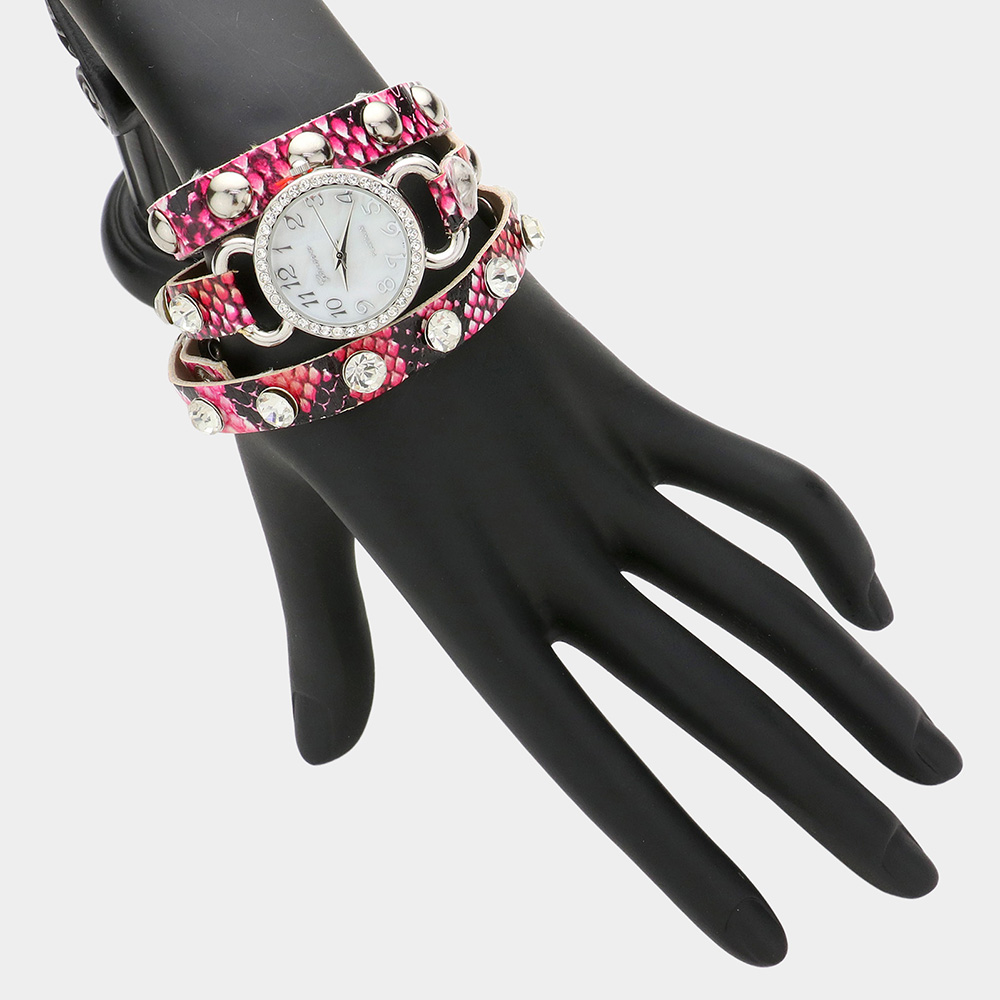 Round Teardrop Oval Stone Embellished Wide Hinged Bangle Bracelet
