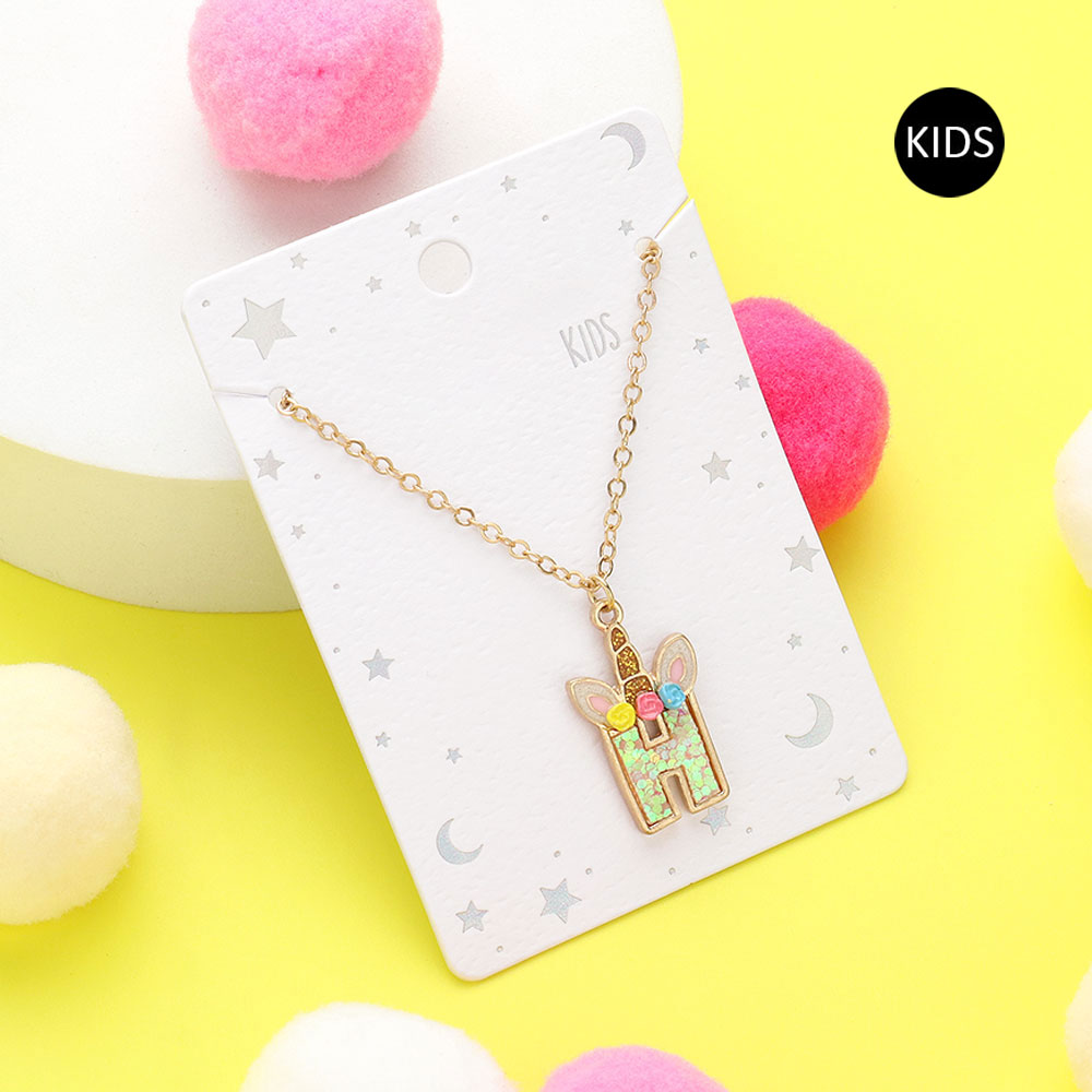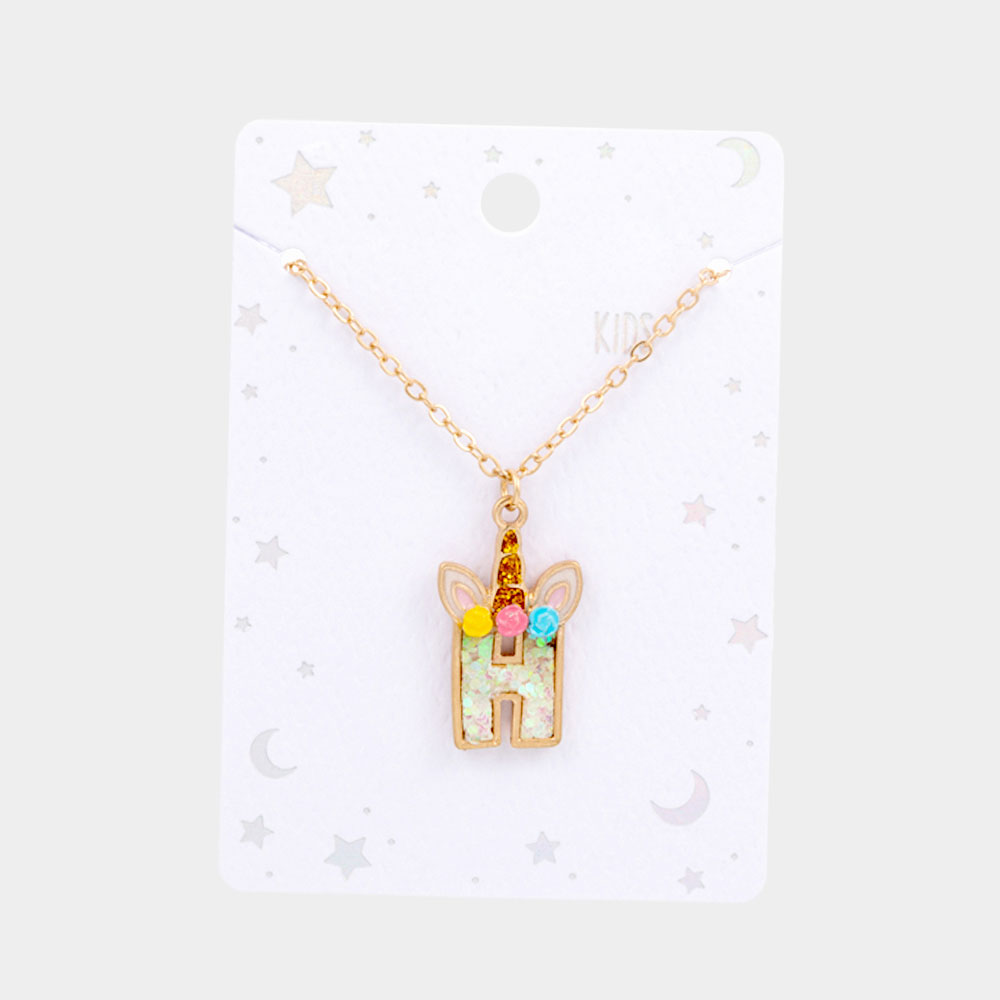 -H- Unicorn Initial Initial Monogram Pendant Kids Necklace