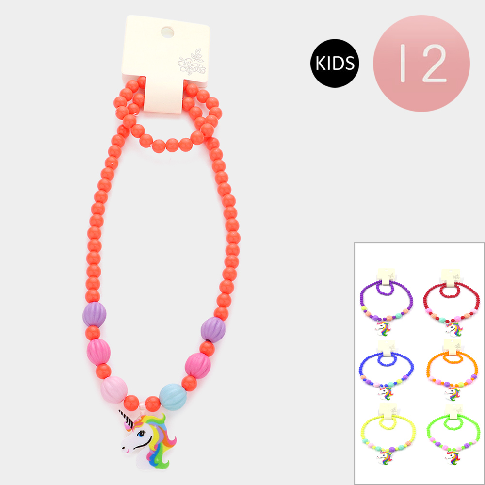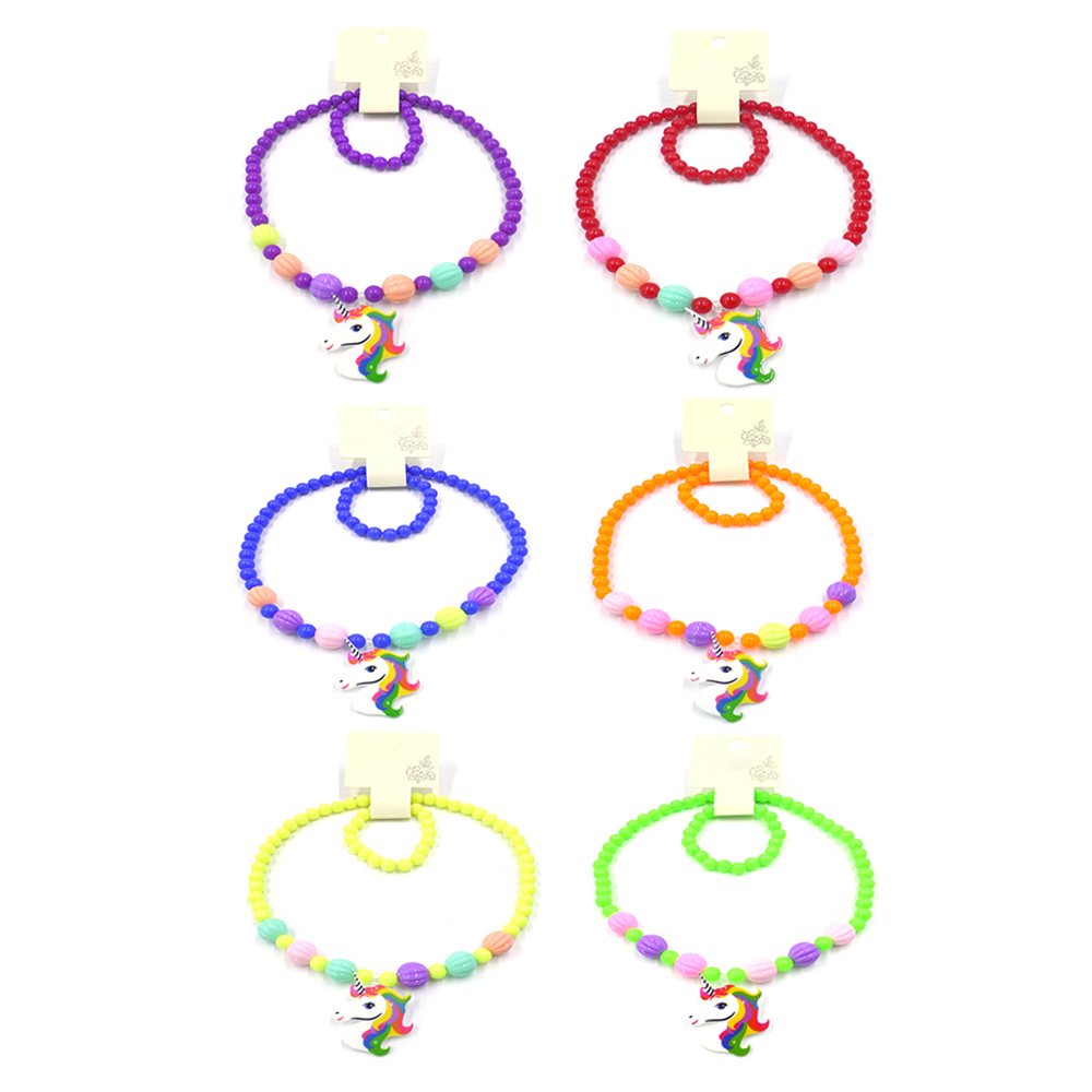 12 Set of 2 - Unicorn Pendant Beaded Kids Necklaces