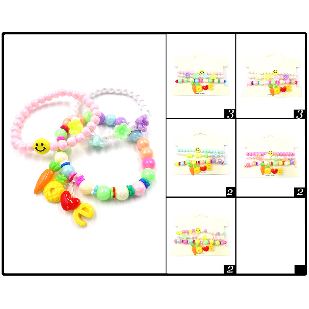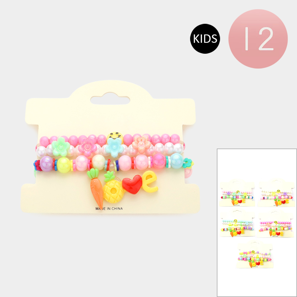 12 Set of 3 - Carrot Heart Pointed Love Message Charm Flower Beaded Stretch Kids Bracelets