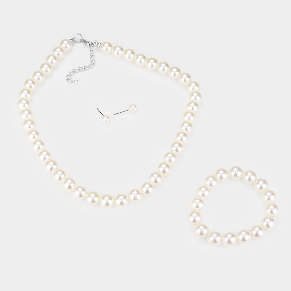 12PCS - Faux Pearl Beaded Kids Bracelet Necklace Sets