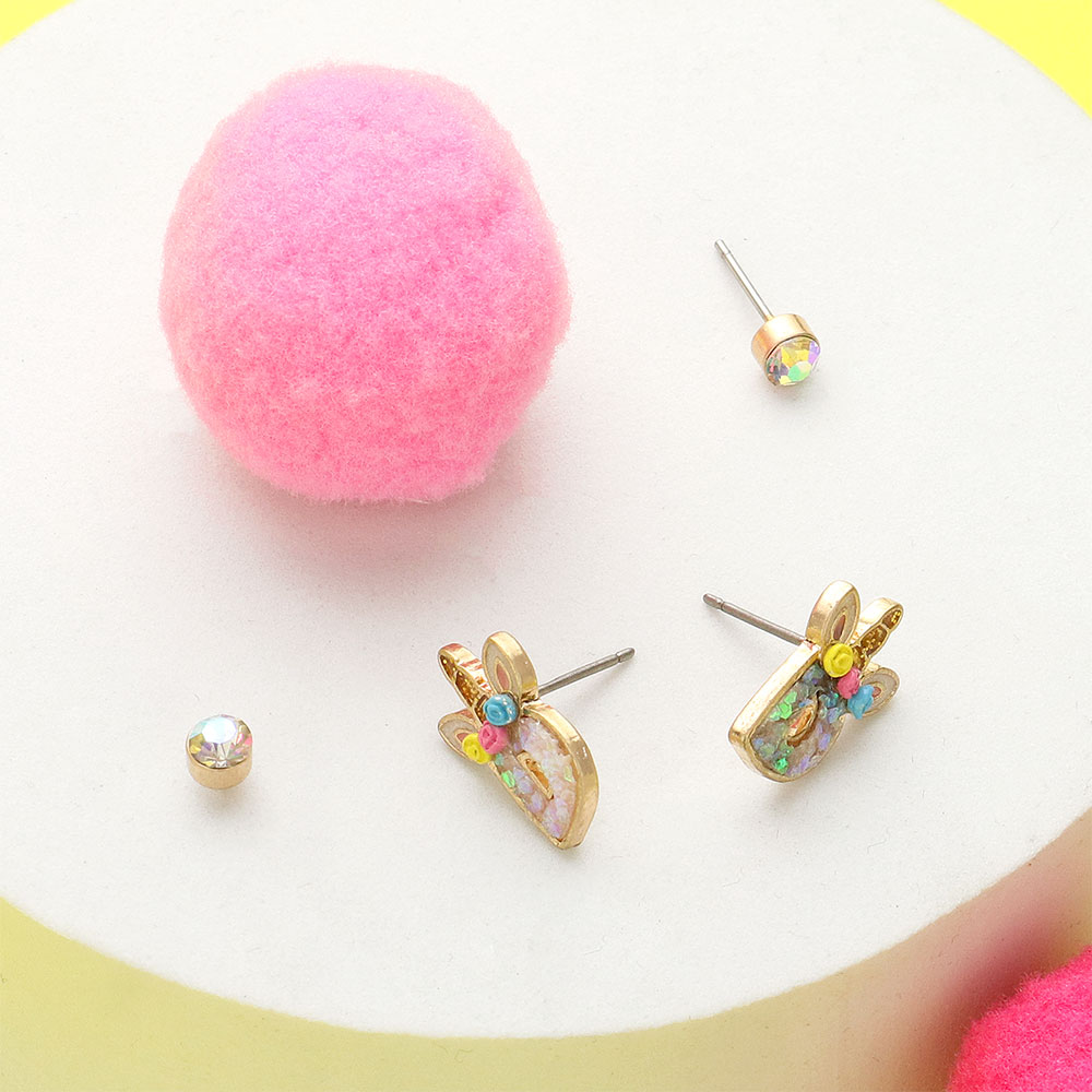Felt Back Beaded Easter Bunny Egg Link Dangle Earrings