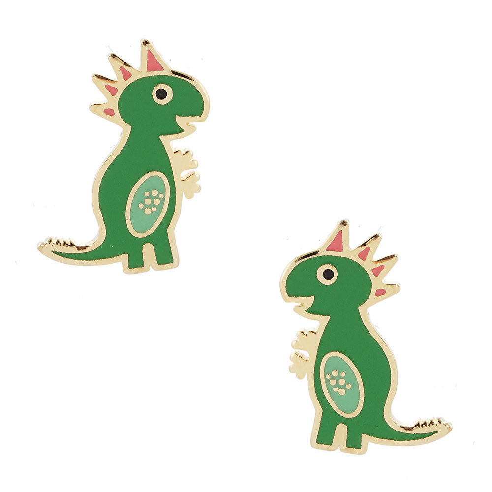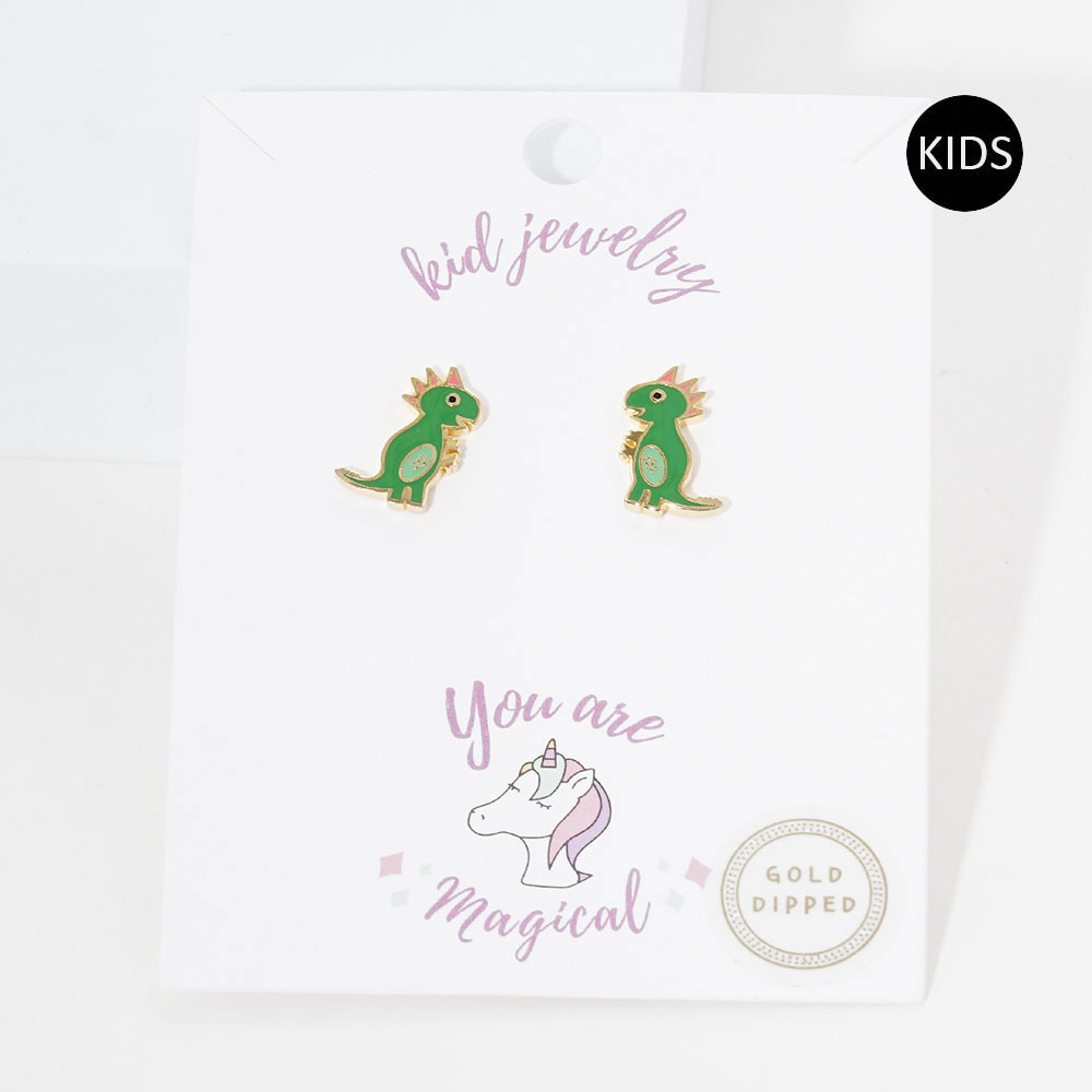Gold Dipped Enamel Dinosaur Clip on Kids Earrings